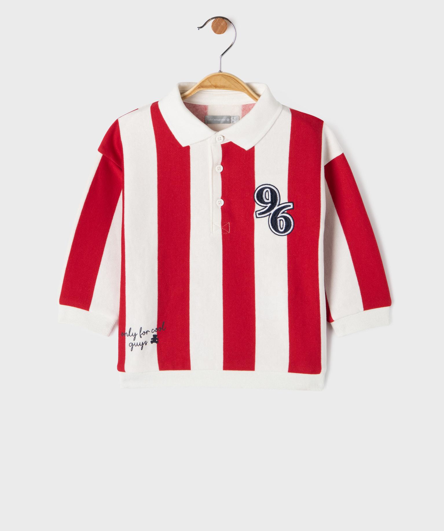 Sweat à rayures avec col polo bébé garçon - LuluCastagnette rouge