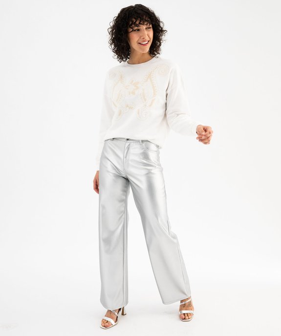 Gémo féminise le sweat avec cette ravissante version ornée d'une large broderie sur l'avant. Ce sweat femme affiche une coupe large classique, avec de traditionnelles finitions en bord-côte. Ce sweat est confectionné en molleton intérieur bouclette, idéal en toute saison. Associé à une jupe droite, une salopette en jean ou un pantalon wide leg, il a tout bon à tous les coups.