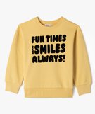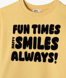 Mettez de la bonne humeur dans le vestiaire de votre enfant avec ce sweat au coloris acidulé orné d’une inscription positive en velours. Un sweat garçon ample doté d’un intérieur molletonné très confortable. Il se porte avec un jean et des baskets pour un look cool et positif au quotidien ! Finitions bord-côte.