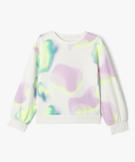 Ce joli sweat va illuminer le dressing des filles avec ses motifs abstraits aux couleurs pétillantes. Un sweat fille aux accents vintage, inspiré de la mode des années 90, à porter avec un jean large et des baskets à plateforme. Ce sweat molletonné à la coupe ample offre aux enfants une chaleur idéale pour l’intersaison. Finitions biais au col, aux poignets et dans le bas.