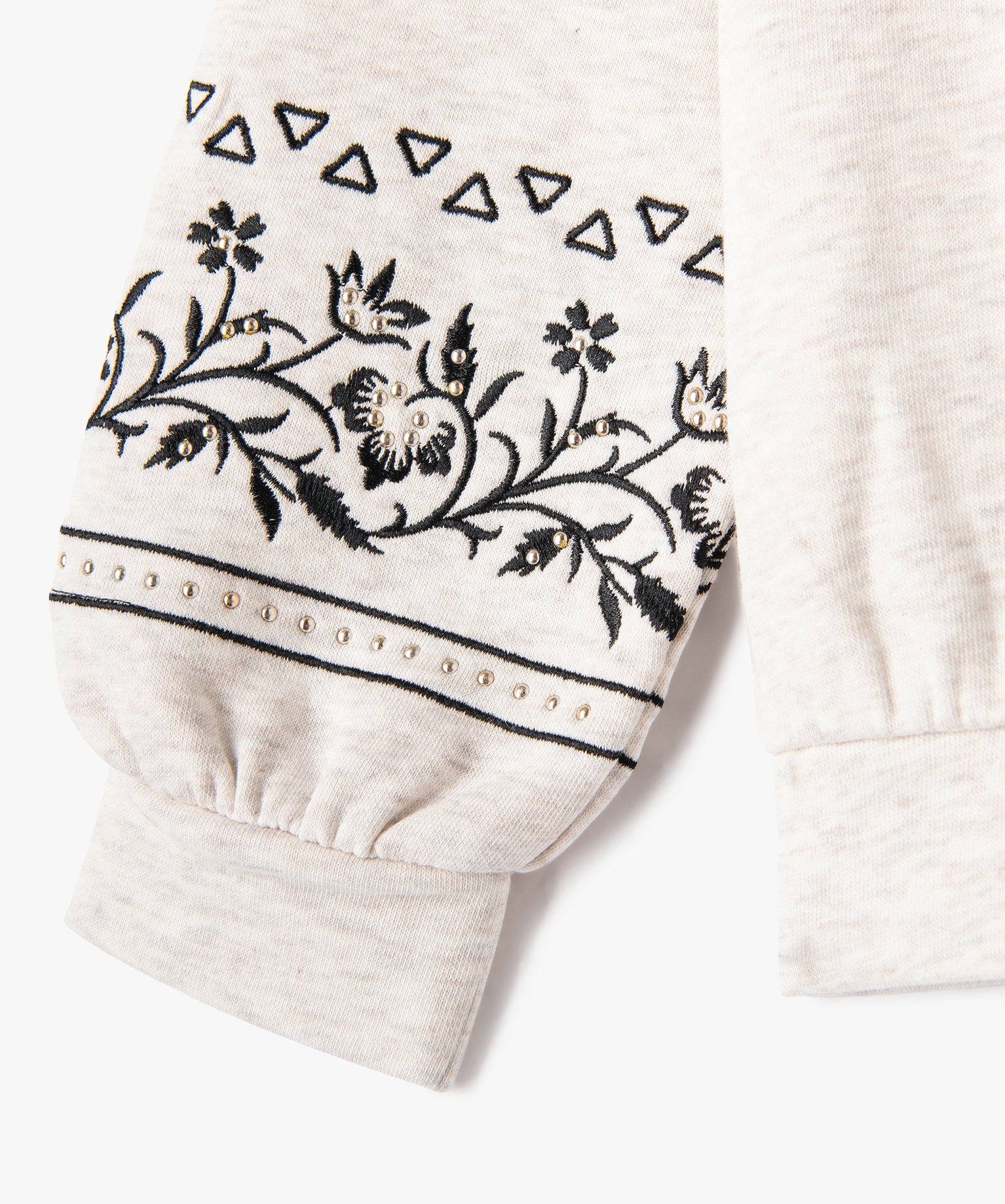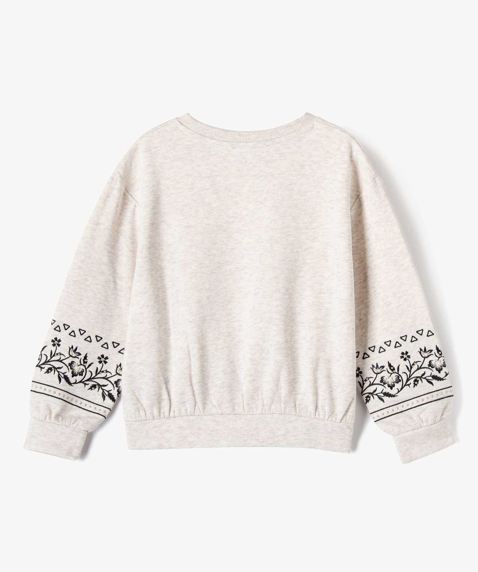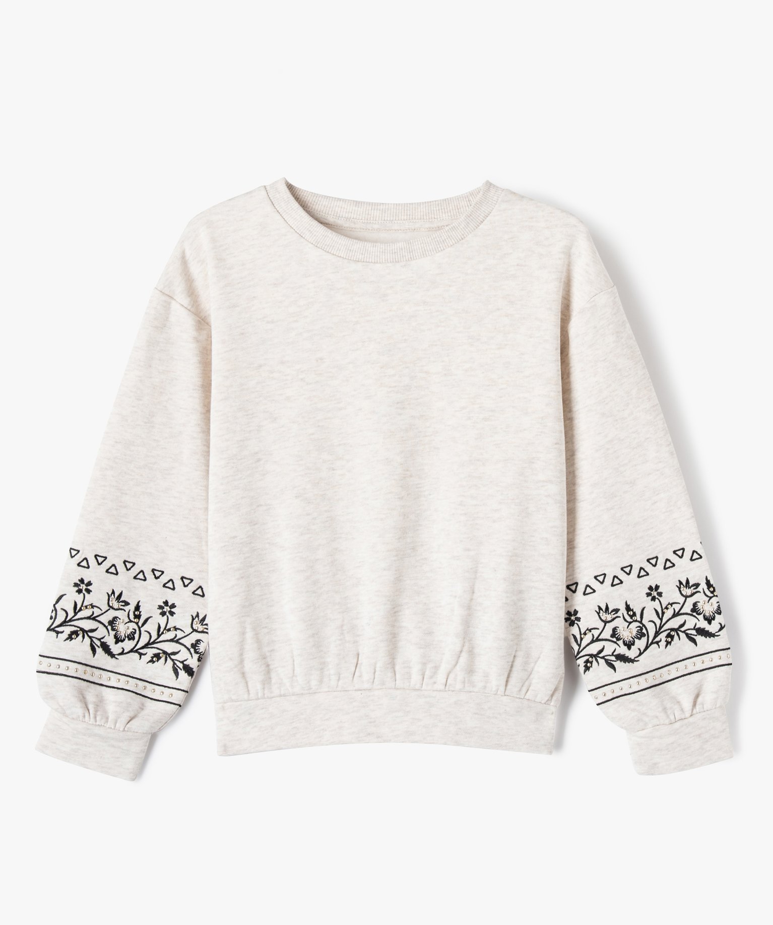 Sweat avec motifs brodés sur les manches fille beige
