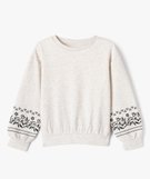 Cette saison, le sweat prend des allures girly avec ses manches ornées de jolies broderies fleuries d’inspiration ethnique et de studs. Un sweat large confectionné dans une maille douce et confortable avec intérieur molletonné, dans lequel les filles vont adorer se blottir. Il affiche des finitions resserrées par un large biais aux poignets et dans le bas. Ce sweat fille original se porte avec une jupe tube et une paire de boots.