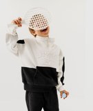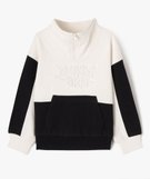 Sweat bicolore à col zippé coupe oversize garçon ecru