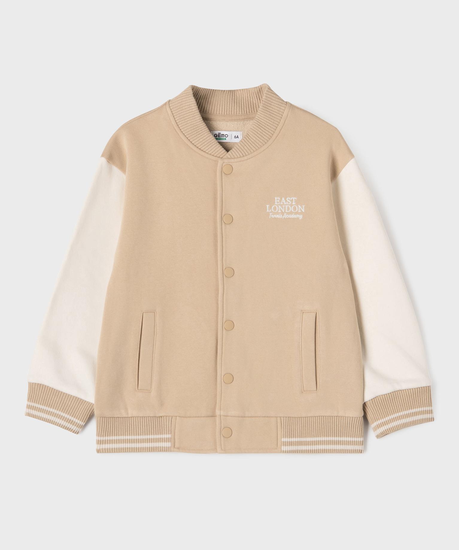Sweat bicolore à fermeture pressions garçon beige fonce