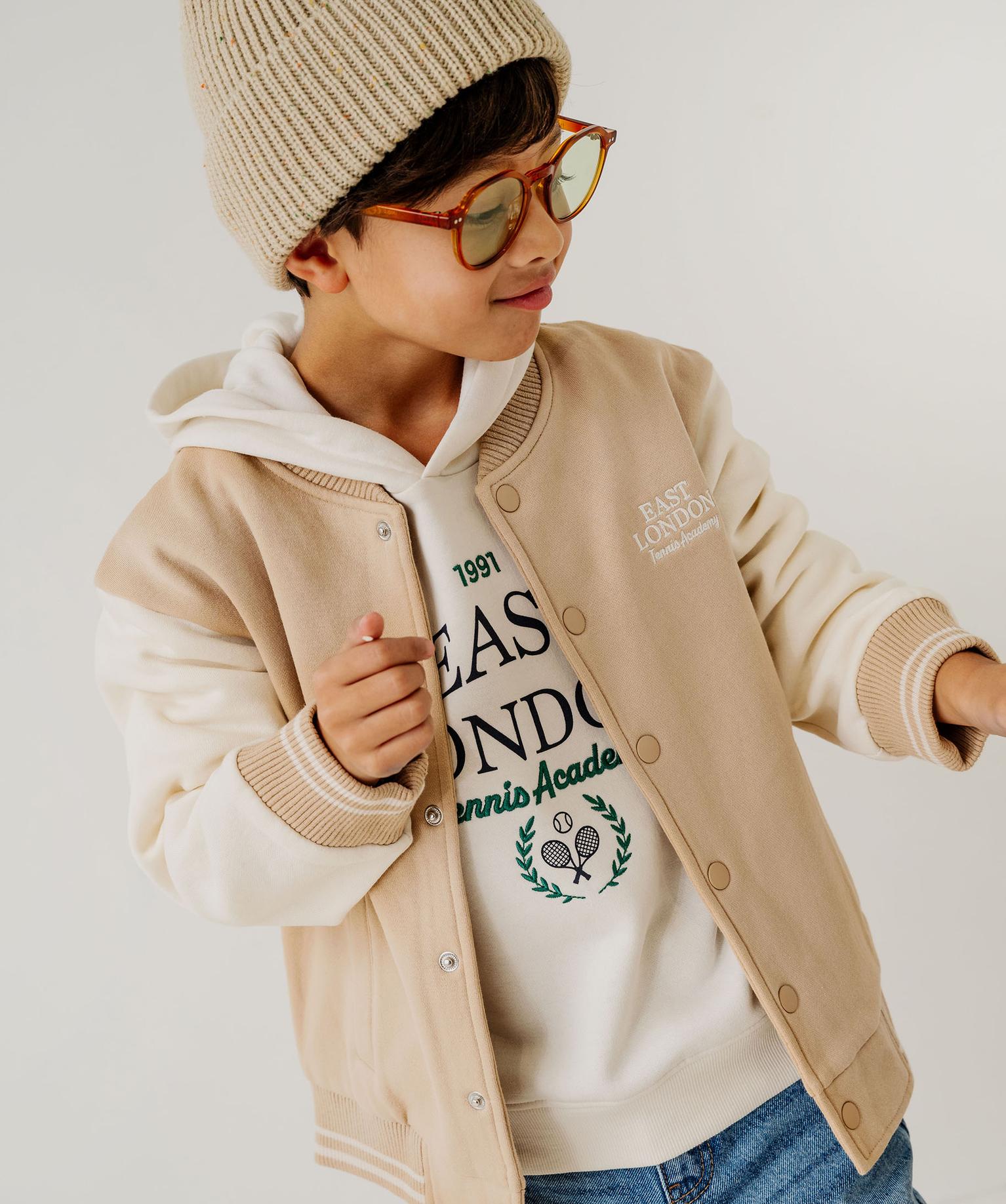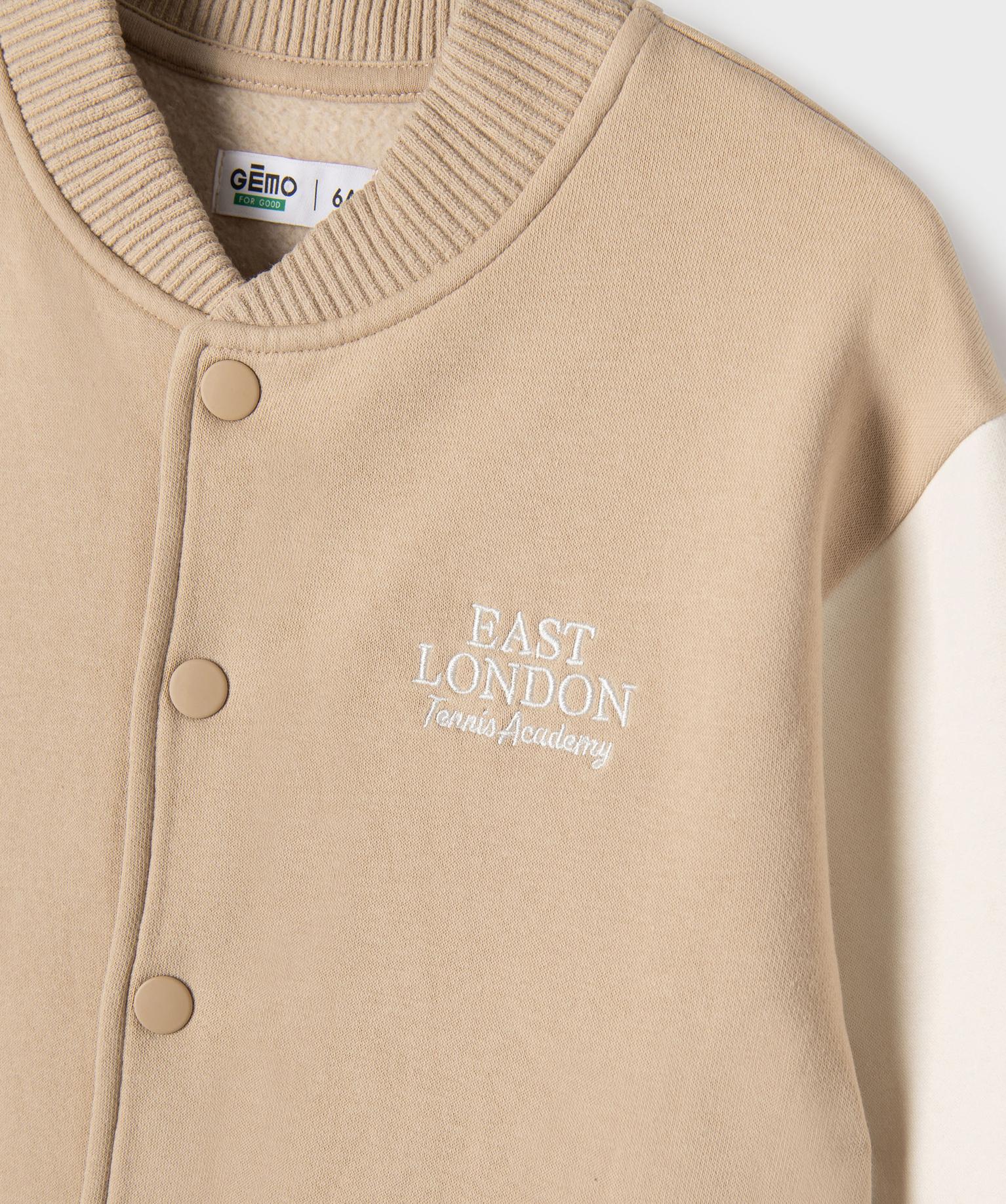 Ce joli sweat garçon, inspiré du blouson teddy, ajoutera une touche vintage dans la garde-robe des enfants. Un sweat molletonné, chaud et confortable, doté de manches au coloris contrastant et de finitions en bord-côte bicolores. Fermé par boutons pressions, il se porte en pull ou en gilet au gré des envies. Une petite broderie sur la poitrine ajoute une touche sporty chic, tandis que les deux poches raglan complètent son allure casual et confortable.