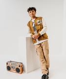 Sweat bicolore fermeture boutons pression garçon marron vif