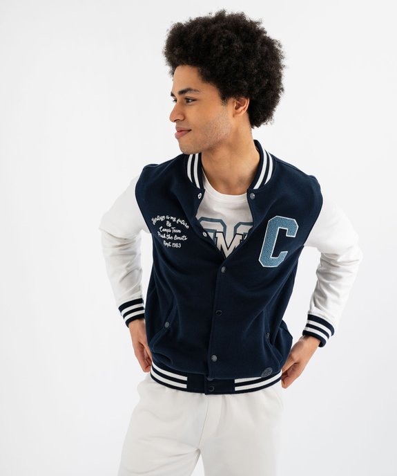 La veste teddy des universités américaines, produit phare le marque Camps United, revient ici en version sweat pour homme. Tout y est : les manches contrastantes, les boutons-pression, les poches raglan, les broderies à la poitrine et les finitions en bord-côte rayé. Le tout dans un molleton gratté hyper doux à l'intérieur. Vous serez sous le charme de ce sweat boutonné, à porter en pull ou comme une veste en le superposant à un tee-shirt ou à un autre sweat fin.