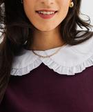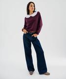 Ce sweat femme revisite les codes du basique sportswear des vestiaires avec une touche ultra féminine. Sa coupe courte, droite et ample offre une allure moderne et décontractée. Confectionné en molleton gratté, le sweat est doux et chaud. Il se démarque par un grand col Claudine à volant, en voile de coton léger, pour un twist romantique et raffiné. Fermé au dos par un bouton avec fente en goutte, le sweat affiche des finitions soignées dans les moindres détails. Finition bord-côte aux poignets. Ourlet double surpiqûre dans le bas.