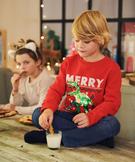 Préparez les fêtes avec ce sweat de Noël garçon, parfait pour allier confort et esprit festif. Fabriqué en molleton gratté tout doux, majoritairement en coton, le sweat assure une chaleur agréable durant les journées d'hiver. Sa coupe ample offre une liberté de mouvement idéale, tandis que les finitions en bord-côte au col, aux poignets et dans le bas assurent un maintien confortable. La couleur vive est animée d'un grand motif dinosaures en sequins réversibles, accompagné de l'inscription « Merry Christmas » et de petits motifs traditionnels : sapins, flocons, Père Noël. Un choix amusant et festif pour célébrer Noël avec originalité.