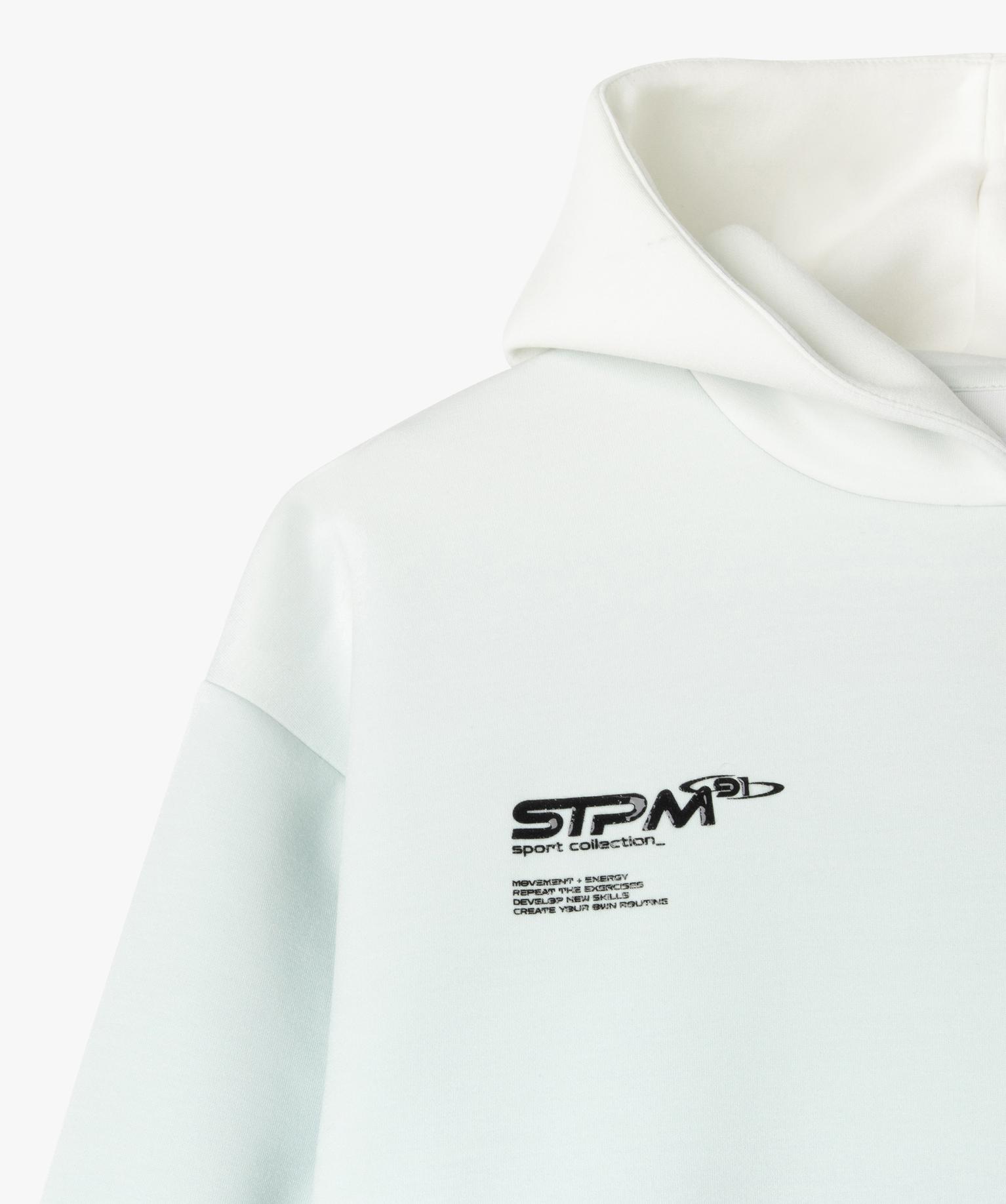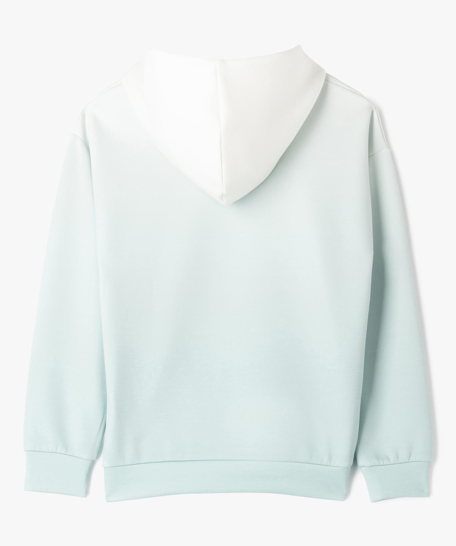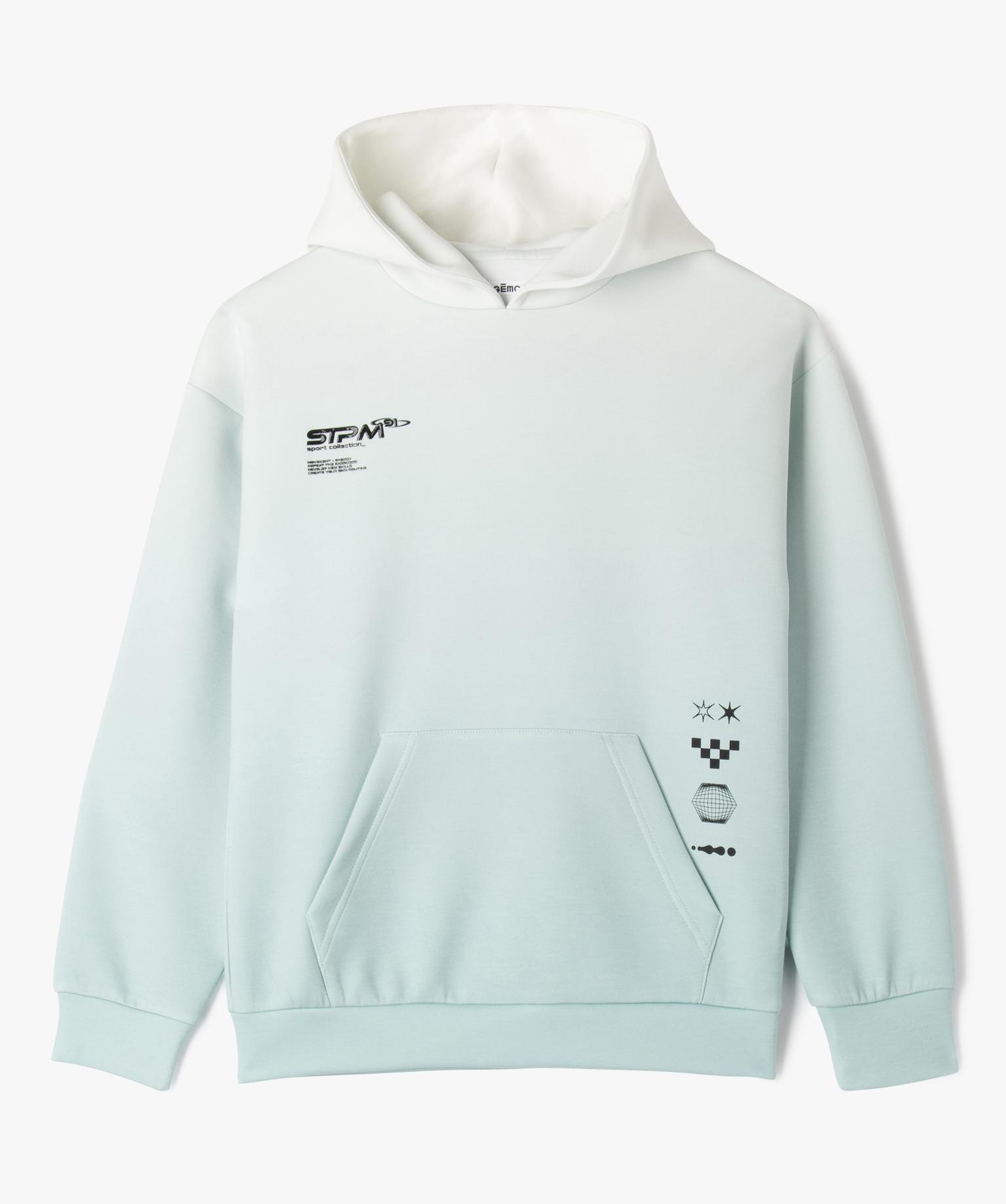 Ce sweat à capuche ajoutera une belle touche de style aux tenues sportives de votre ado. Décliné dans un coloris tendre, il affiche un subtil effet dégradé. Ce sweat garçon est agrémenté d’une inscription sur le haut du buste et de motifs dans le bas. Mais ce qui le rend véritablement différent c’est sa matière contenant de la viscose au toucher ultra doux. Ce sweat de sport possède une grande poche kangourou et des finitions biais aux poignets et dans le bas. Il se porte avec un pantalon de jogging et des baskets pour tous les entrainements sportifs.