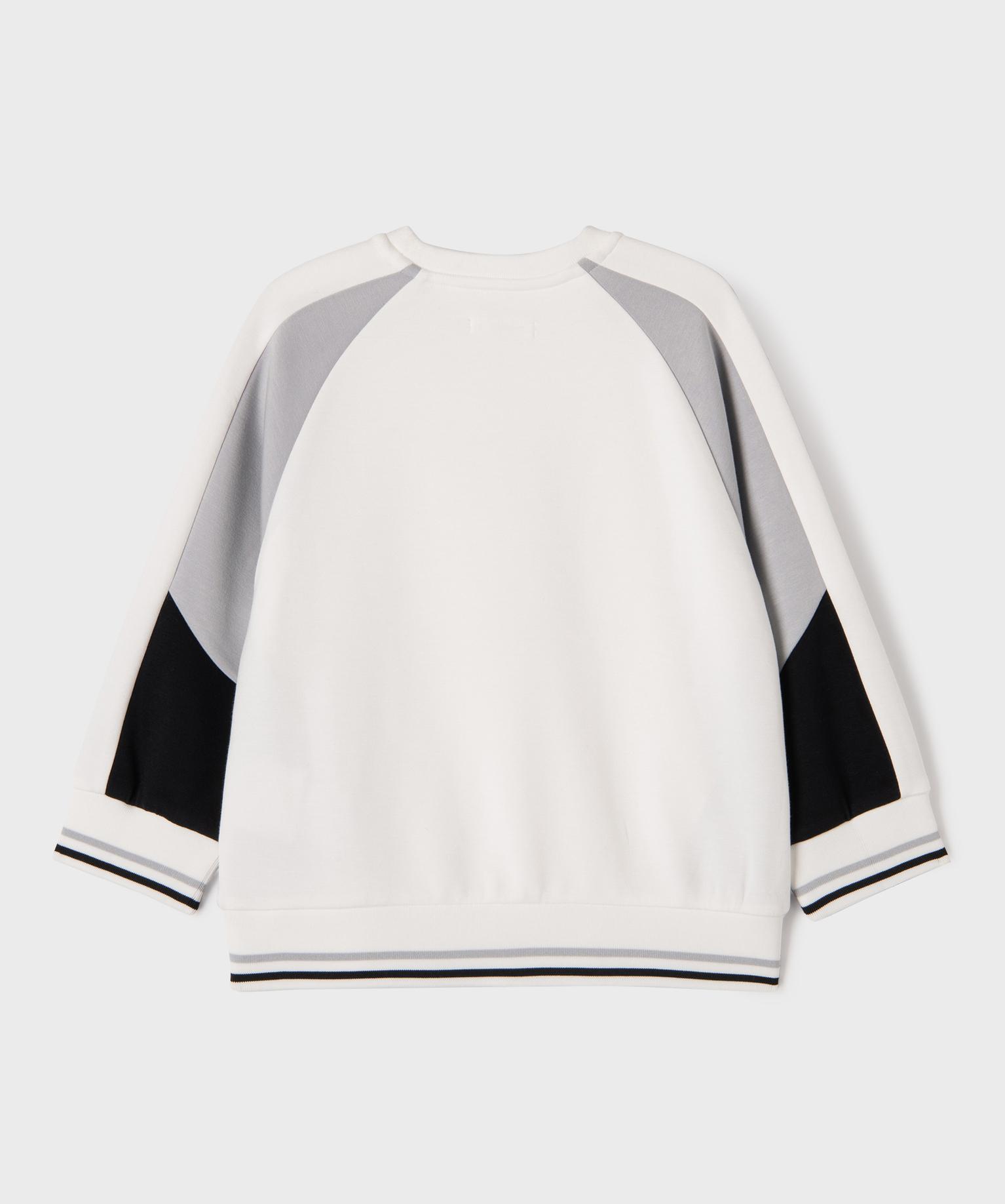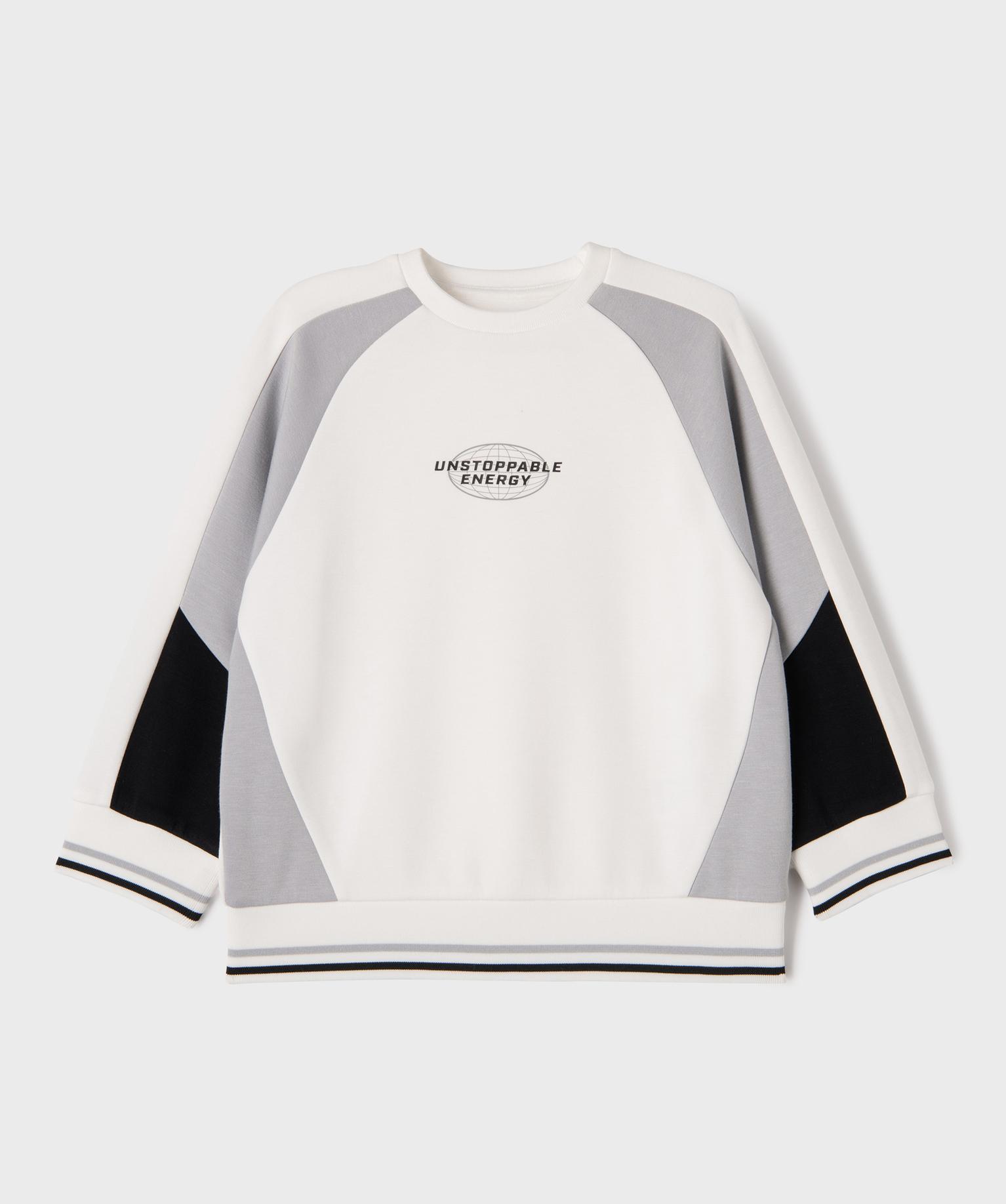 Confectionné dans une maille souple ultra douce, ce sweat de sport offrira un confort optimal aux enfants lors de leurs entrainements. Ses empiècements de différents coloris dans un design graphique, et son inscription sur le buste, lui confèrent une allure dynamique. Ce sweat garçon est doté de finitions en bord-côte élastique, rehaussées de liserés colorés. Un sweat à porter avec un pantalon de jogging et des baskets. Emmanchures raglan. Col rond.