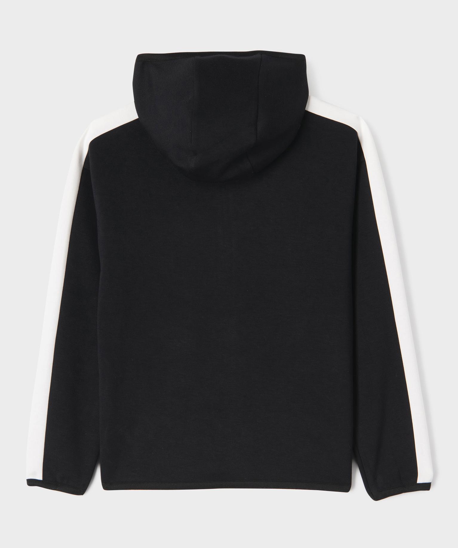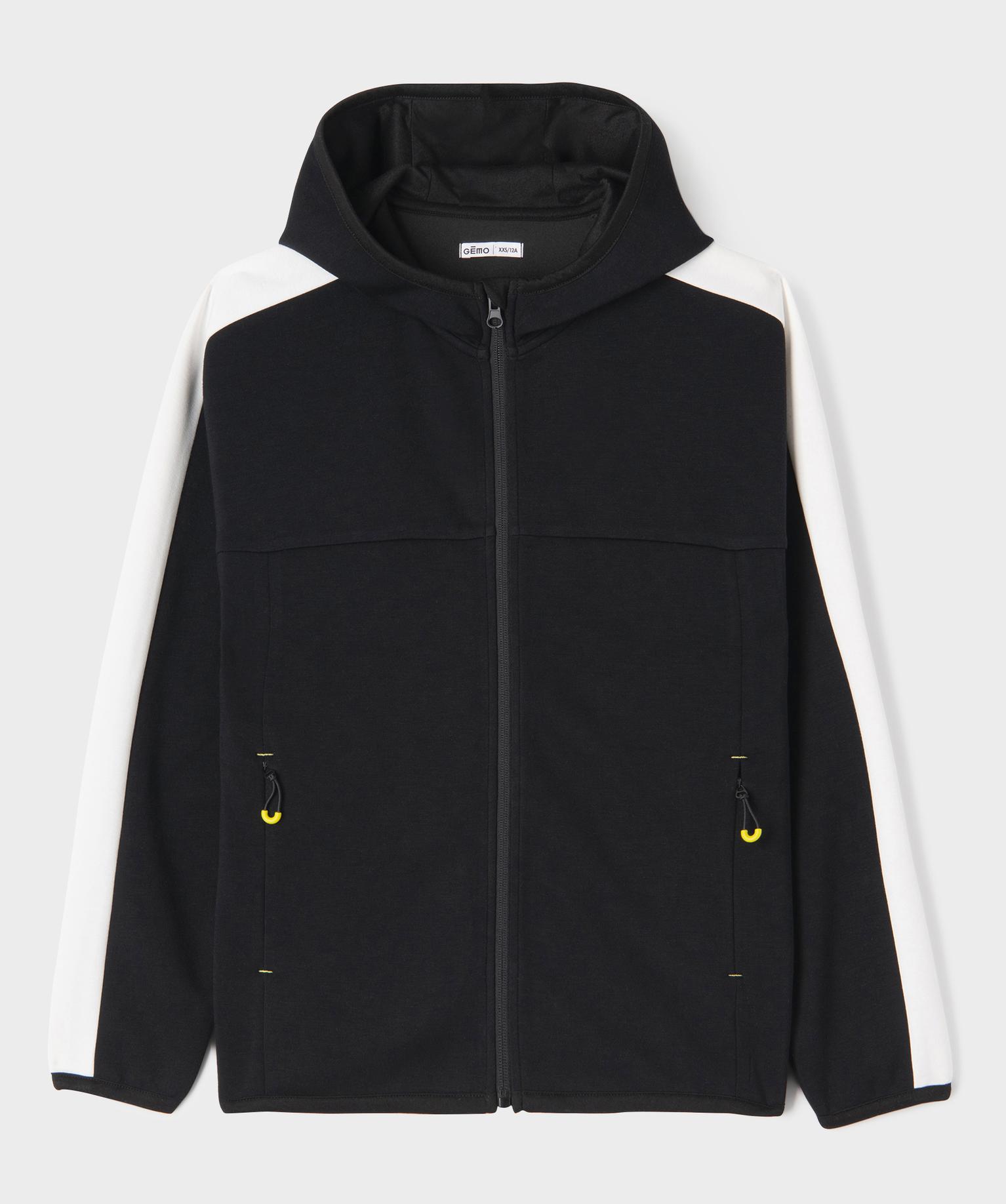 Bougez librement avec ce sweat zippé à capuche garçon pensé pour le confort et le style des ados. Sa matière sport légère, extensible accompagne tous les mouvements. La capuche doublée et le col légèrement montant protègent du vent. Les bandes contrastantes sur les manches dynamisent la silhouette. Deux poches zippées pratiques et une patte de protection sous le menton ajoutent une finition soignée au sweat.