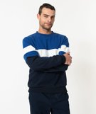 Sweat pour homme confectionné dans un molleton bouclette souple et léger, idéal pour la mi-saison. Avec son look simple - coupe droite confortable, col rond à large bord-côte - et son style multicolore, ce sweat convient à de nombreux bas : jean, pantalon en toile, pantalon 5 poches, etc. Finition bord-côte aux poignets et dans le bas.
