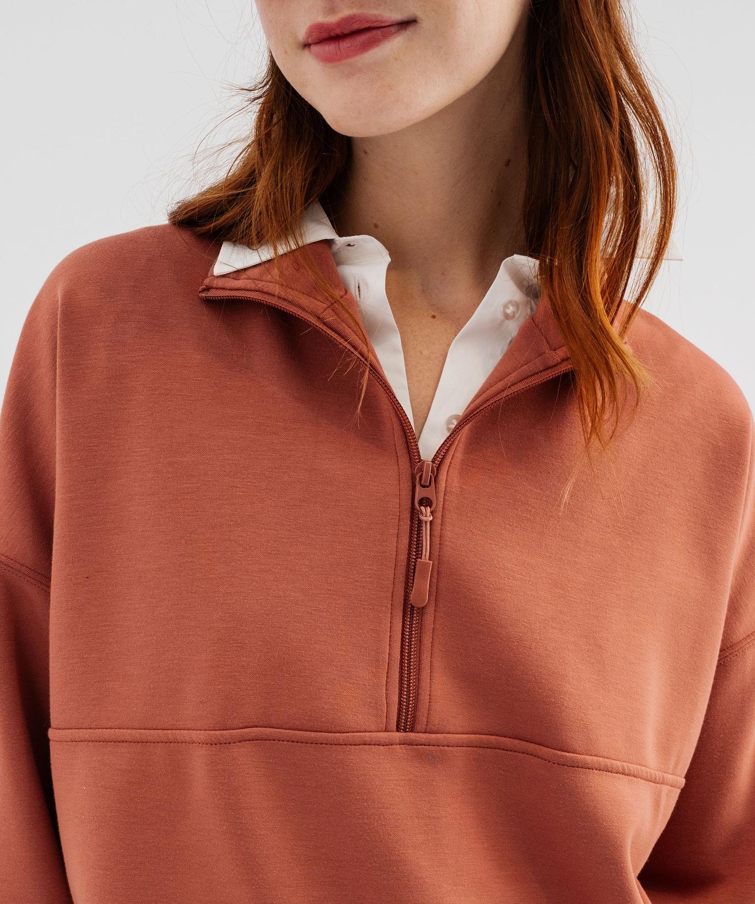 Sweat en maille souple à col zippé femme brique