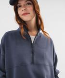Ce sweat à col zippé possède de nombreux atouts pour vous plaire ! Confectionné dans une maille ultra souple enrichie en viscose, il offre douceur et confort. Il affiche une coupe oversize avec épaules tombantes pour un look loose pile dans la tendance. Ce sweat femme, inspiré de l’univers du sport, s’accordera parfaitement avec un pantalon de jogging et une paire de baskets. Finitions biais aux poignets et dans le bas. Col zippé avec tirette fantaisie.