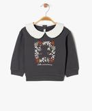 Sweat en molleton à col Claudine brodé bébé fille - LuluCastagnette gris fonce