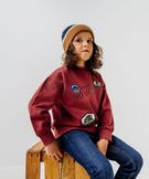 Sweat en molleton doux imprimé dinosaures all over garçon rouge vif