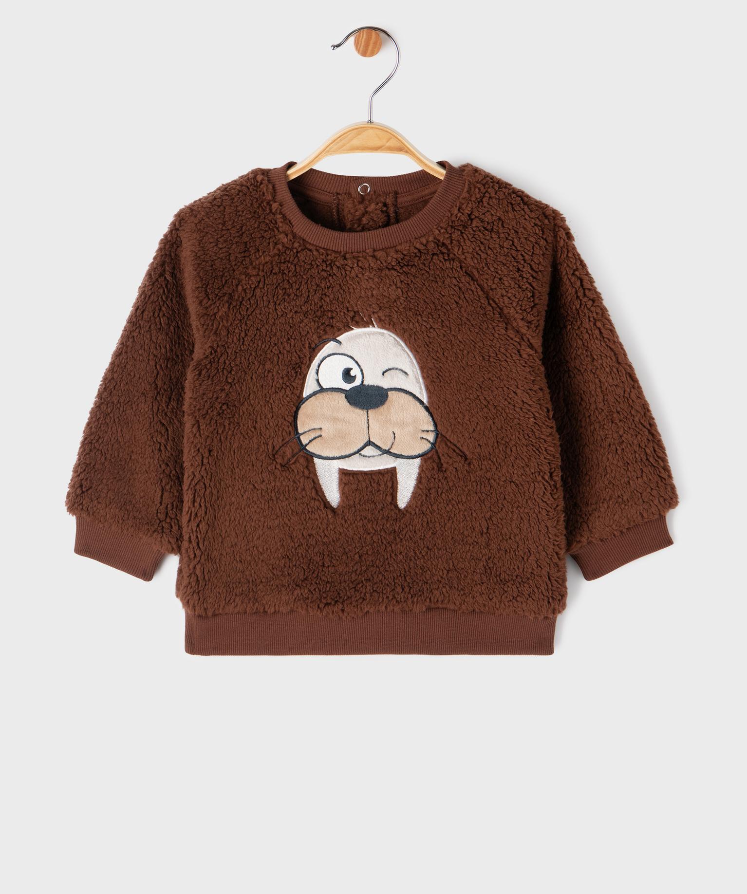 Sweat en sherpa douillet imprimé bébé garçon marron