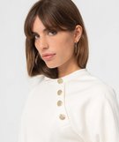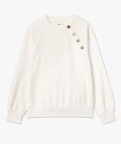 Sweat femme avec manches raglan et boutons fantaisie blanc chine