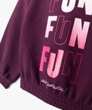 Ce sweat à capuche ajoutera une touche de pep’s aux tenues sportives des filles. Avec sa capuche au coloris girly et son inscription scintillante sur l’avant, ce sweat fille affiche un look glamour qui comblera les jeunes fashionistas. Ce sweat coloré se porte avec le pantalon de jogging assorti ou avec un jean délavé. Bas resserré par un large élastique. Manches larges resserrées par bord-côte.