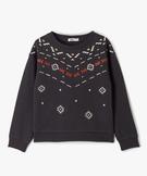 Pour un hiver au chaud et stylé offrez à votre fille un sweat en molleton doux orné de broderies géométriques inspirées des motifs Incas. On note les petites touches de doré qui apporte une belle lumière au look de votre enfant. Le sweat pour fille sera superbe avec un jean skinny gris ou un pantalon en toile brique. Finition bord-côte au col, aux poignets et dans le bas.