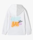 Le traditionnel sweat à capuche s’affiche cette saison avec un large imprimé dans le dos et une discrète inscription avec touche de couleur sur la poitrine. Un sweat garçon qui respecte les codes du genre avec sa capuche doublée jersey, sa poche kangourou et ses finitions bord-côte aux poignets et dans le bas. Une pièce confortable à porter avec un pantalon de jogging ou un jean.