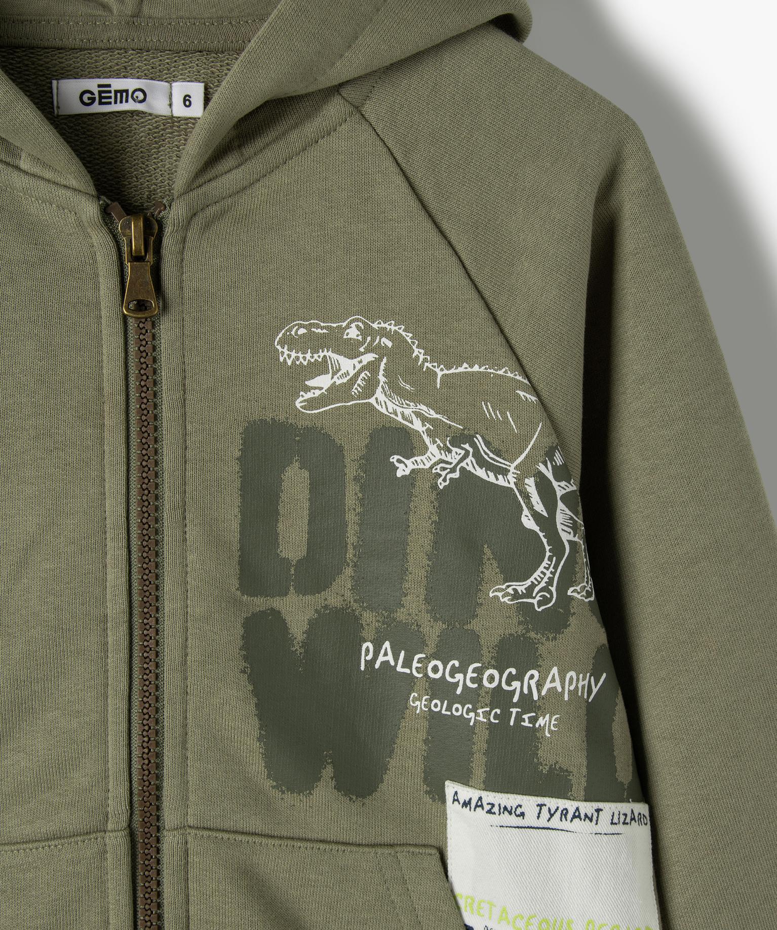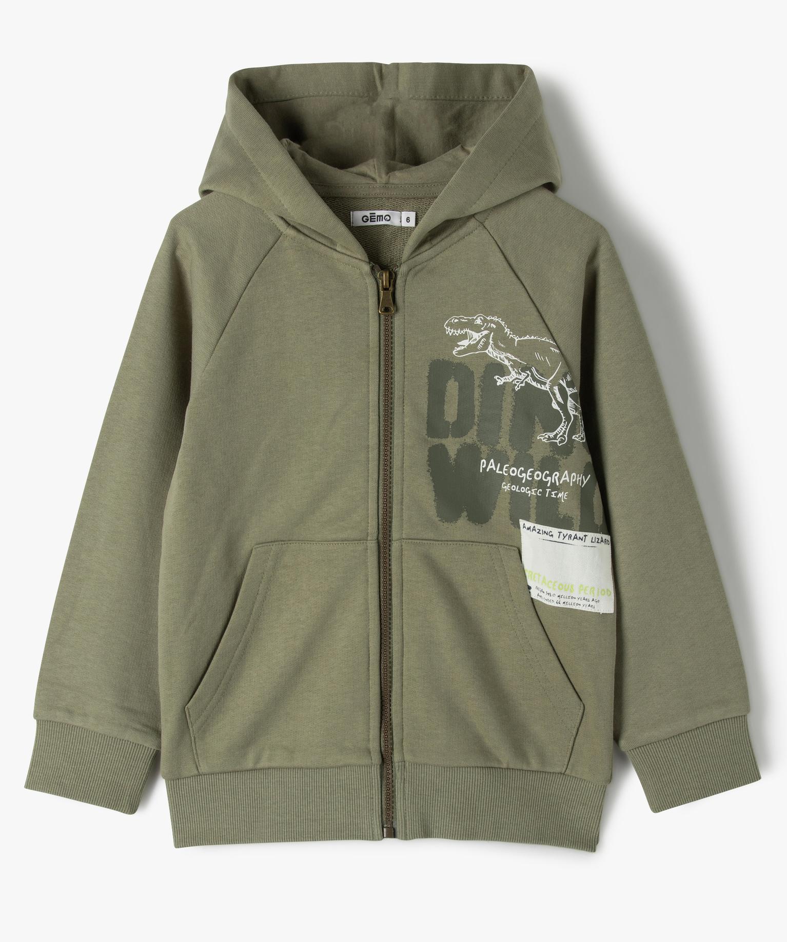 Un sweat à capuche zippé qui fera le bonheur de tous les petits aventuriers. Avec son large motif dinosaure sur le haut du buste et son étiquette brodée, il remportera tous les suffrages dans la cour de récréation ! Un sweat garçon non molletonné à porter dès l’entrée de saison seul ou sur un tee-shirt. Emmanchures raglan. 2 poches façon kangourou.