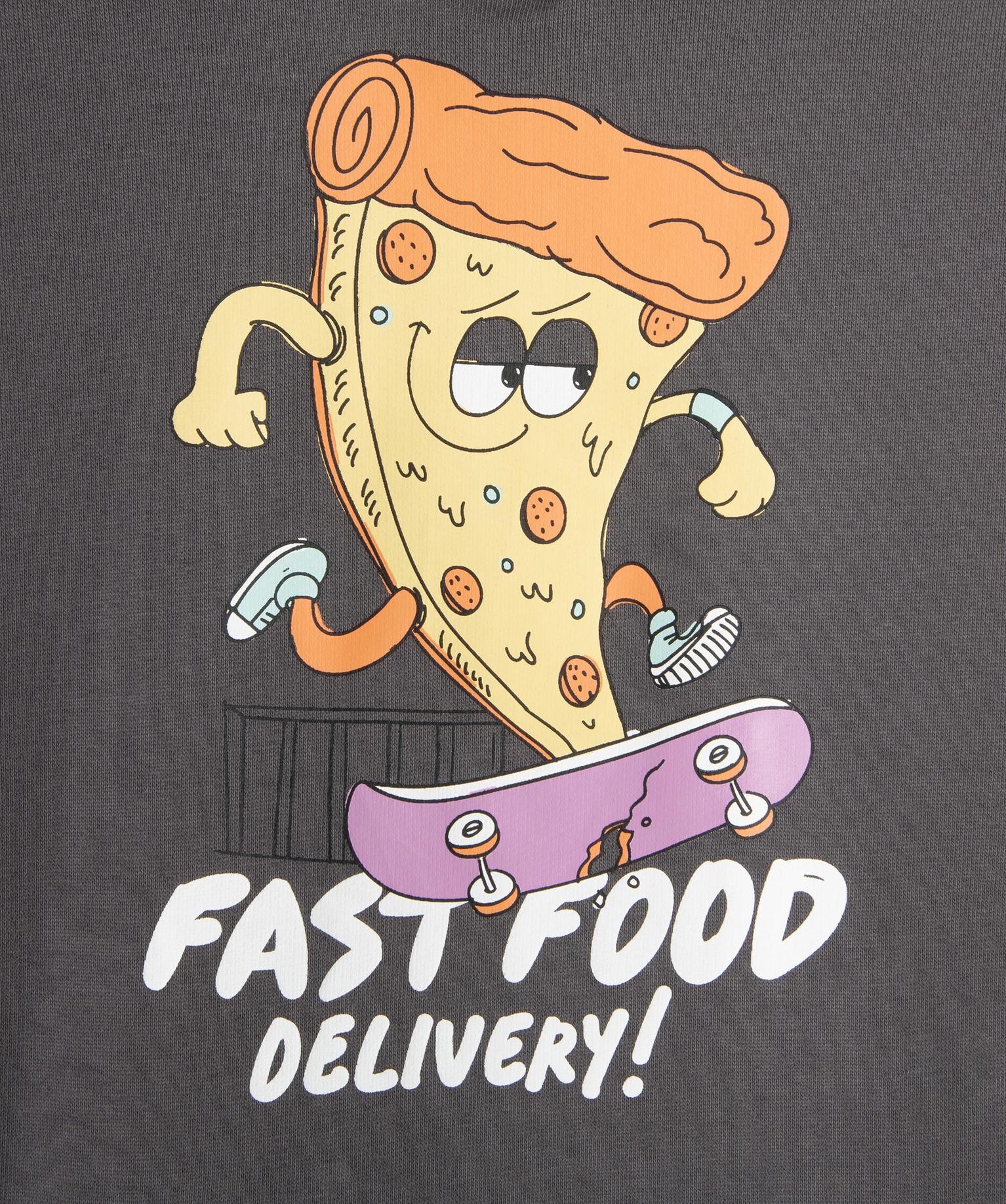 La pièce phare du dressing des ados s'affiche ici dans un mood humoristique avec son imprimé rigolo ! Pour le reste, le sweat garçon réunit tous les atouts du pull confort : confection dans un molleton bouclette 100% coton épais et confortable, grande capuche doublée croisée à l'encolure, finition biais aux poignets et à la base, grande poche kangourou. Un sweat imprimé à porter avec un jean, un bermuda ou un jogging pour une allure décontractée.