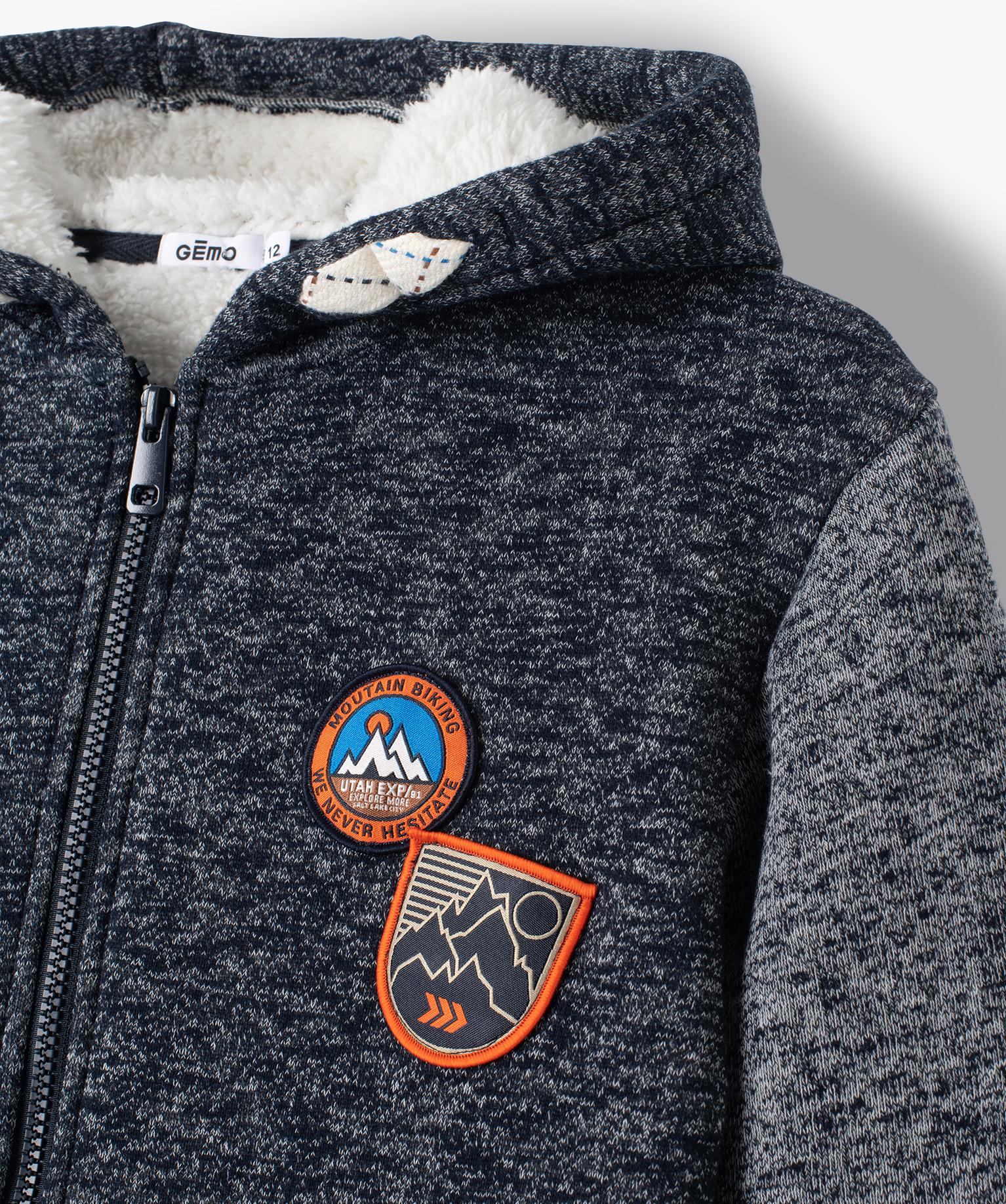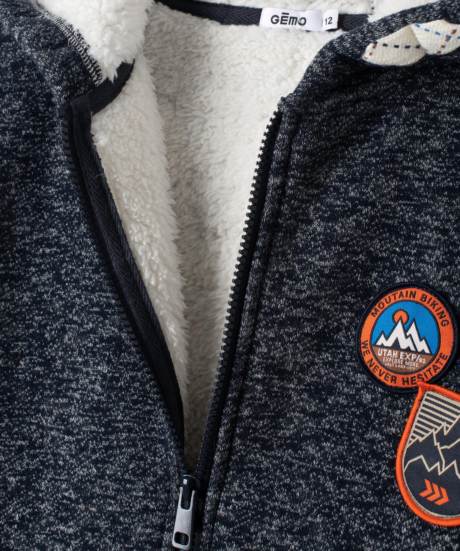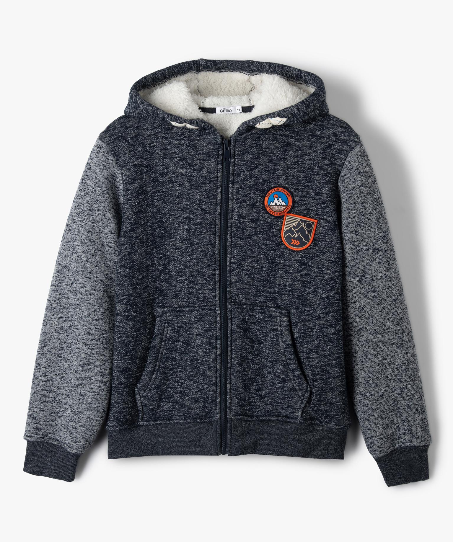 Sweat garçon zippé avec capuche doublé sherpa noir chine