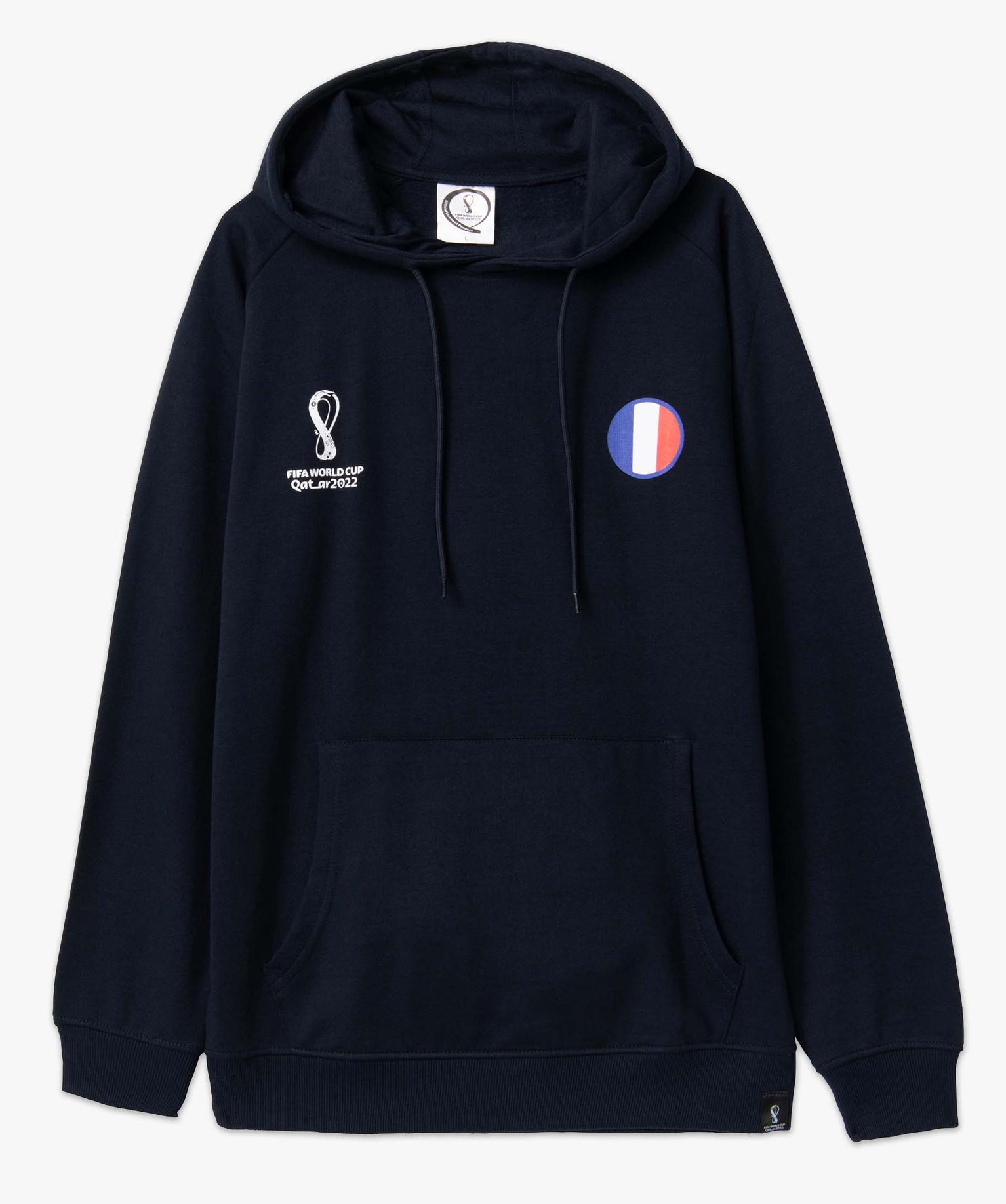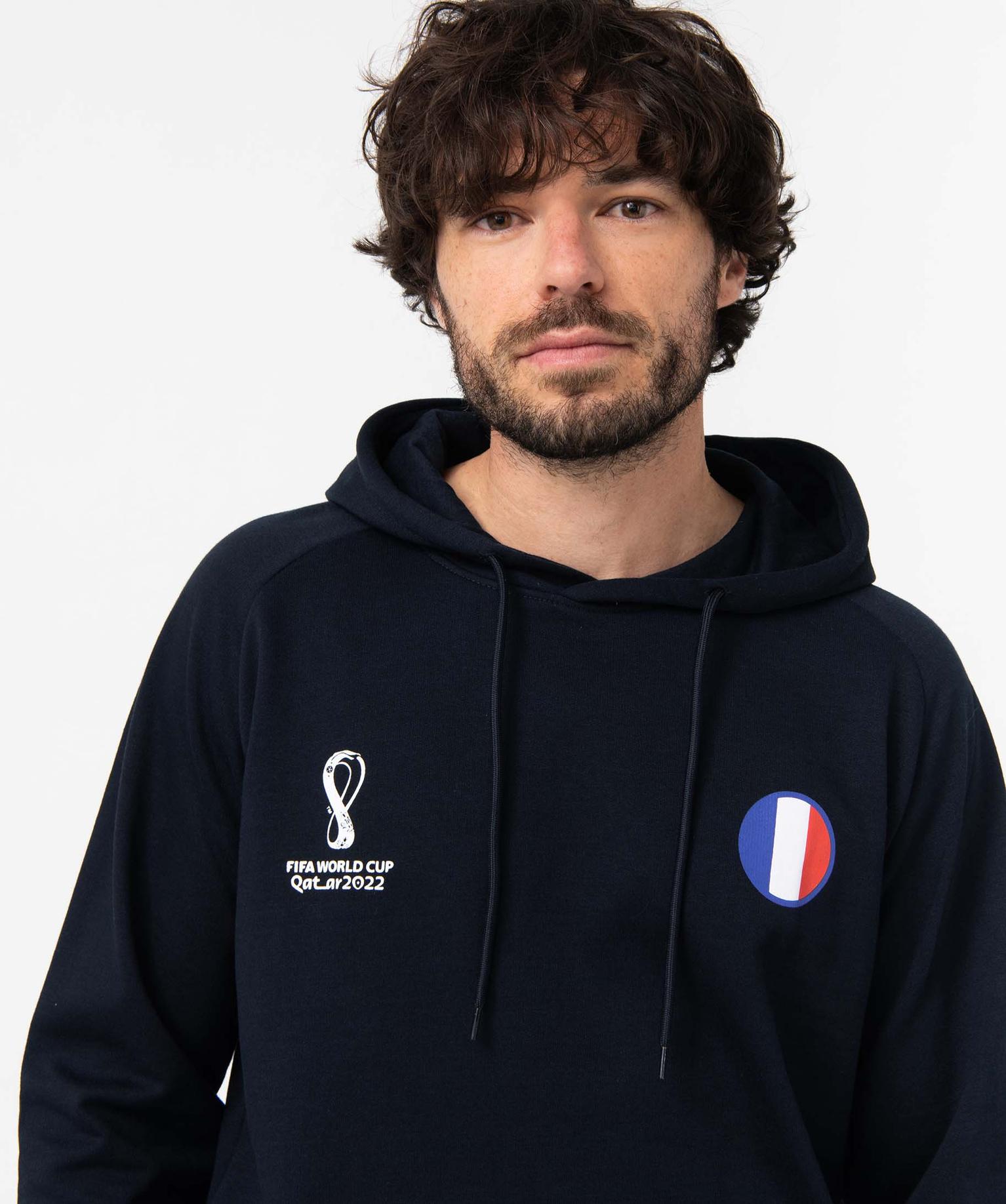Affichez votre soutien à l'équipe de France pour la Coupe du Monde de football 2022 avec ce chouette sweat pour homme. Un sweat en jersey molletonné extra doux à l'intérieur, avec capuche doublée à cordon coulissant et poche kangourou. Le sweat est décoré de petits logos sur la poitrine. Finition bord-côte aux poignets et dans le bas.