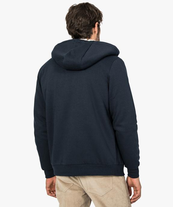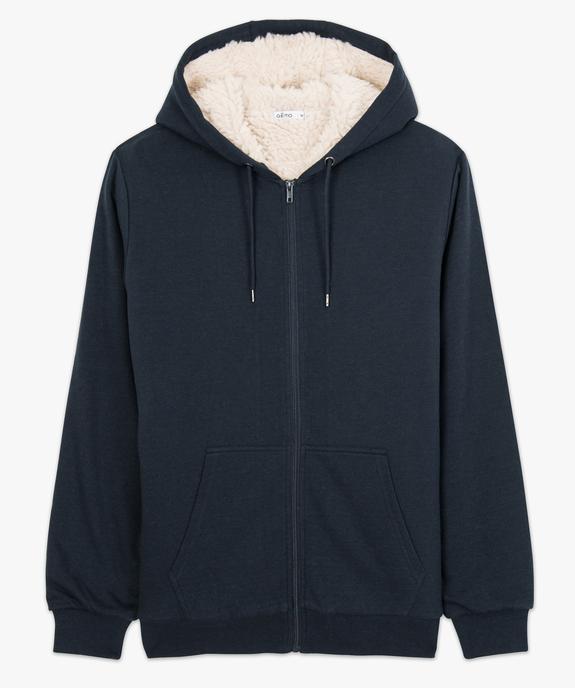 Sweat homme zippé à capuche avec doublure sherpa noir chine