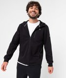 Sweat pour homme à la coupe droite et aux finitions biais modernes. Un sweat zippé avec une capuche doublée de maille filet. Le sweat possède une poche poitrine zippée, des petits motifs placés, des poignets en bord-côte et un col montant. Dans le dos, une petite bande de points rétroréfléchissants. Poches latérales dissimulées dans les coutures. Jeu de surpiqûres.