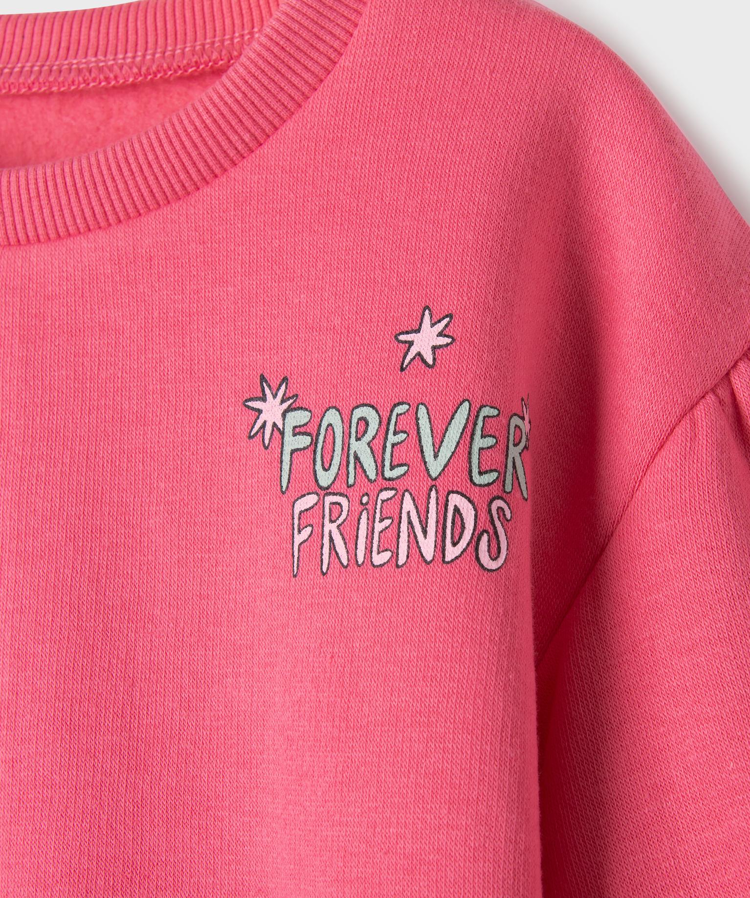 Sweat imprimé à manches bouffantes bébé fille rose vif