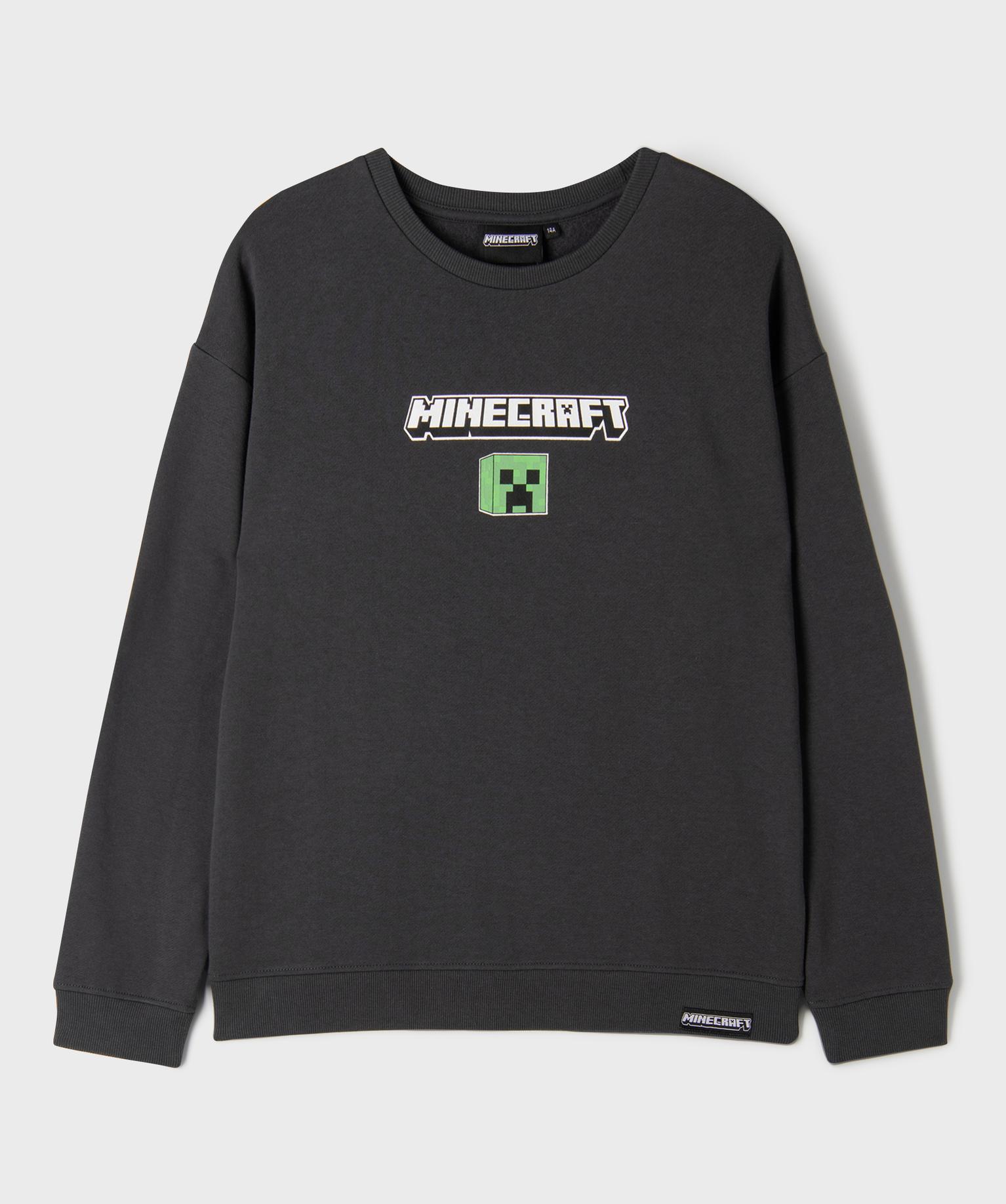 Sweat imprimé devant et dos garçon - Minecraft gris fonce