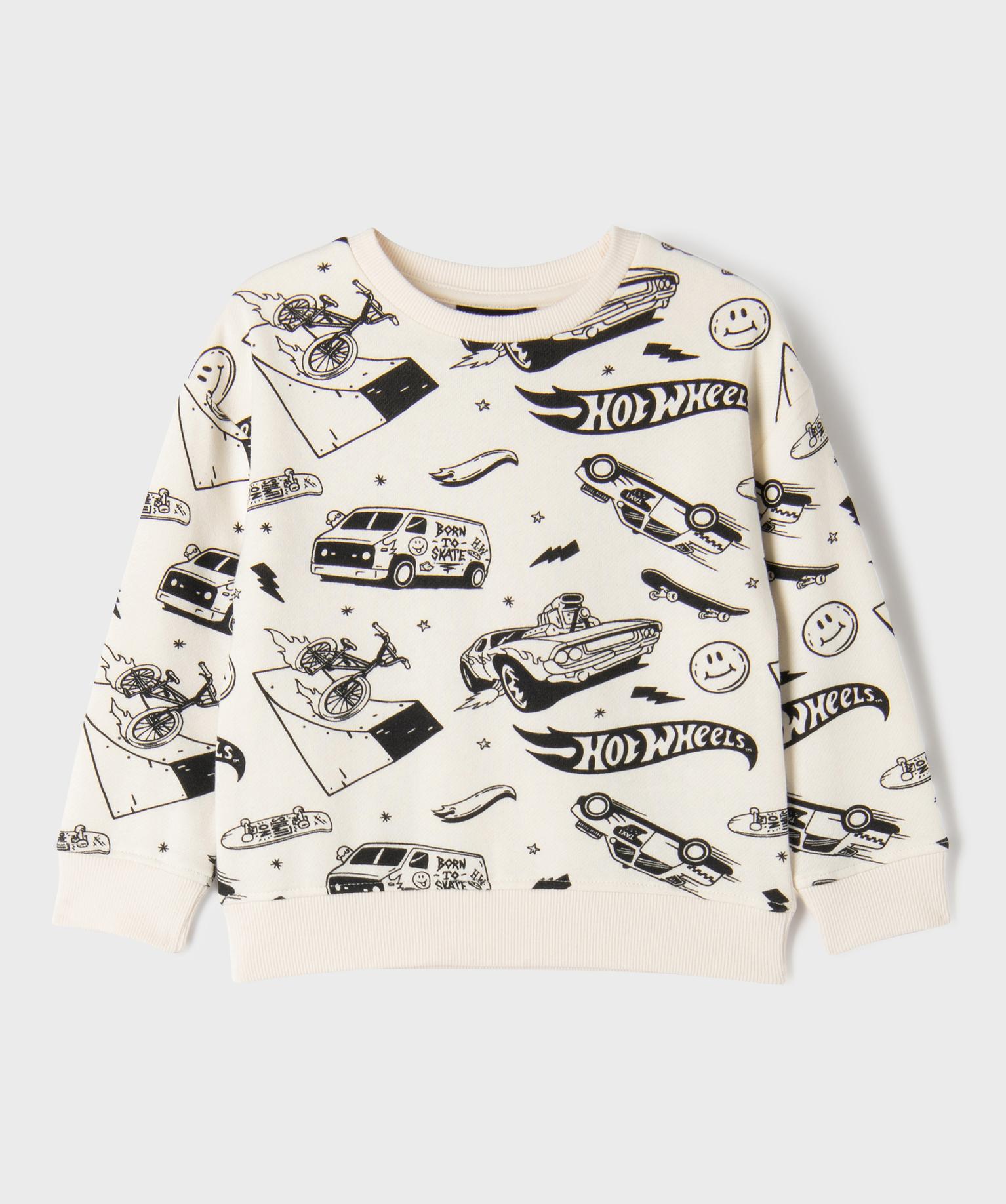 Sweat imprimé véhicules et skate garçon - Hot Wheels ecru