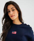 Ce sweat femme LuluCastagnette revisite la marinière. Décliné en version unie brodé d'un petit drapeau US devant, ou à rayures classiques, le sweat affiche un style casual intemporel. On craque pour sa touche élégante apportée par les boutons dorés gravés à l’épaule. La signature du pull marin ! Confectionné en molleton gratté doux et chaud, ce sweat vous promet confort et chaleur au quotidien. Un basique moderne, facile à porter, parfait pour réchauffer vos looks avec caractère. Col long à large bord-côte. Finition bord-côte aux poignets et dans le bas.