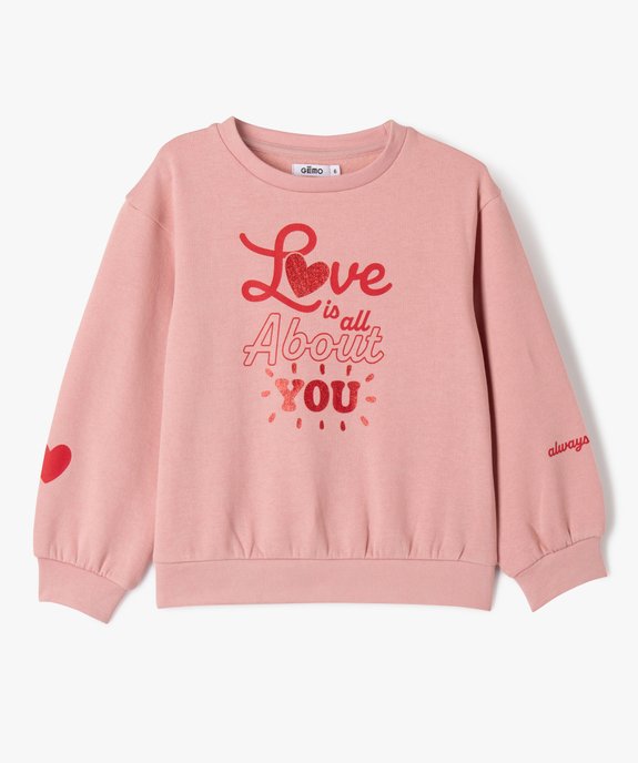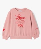 Ce sweat pour fille est un véritable hymne à l’amour conçu pour faire briller les jeunes fashionistas. Il arbore de jolis motifs, ponctués de touches pailletées, apportant une touche de glamour irrésistible. Ce sweat molletonné offre une coupe ample pour un confort optimal, avec des fronces délicates dans le bas et aux poignets, créant un effet bouffant charmant. Avec ce sweat à message, les petites coquettes pourront exprimer leur personnalité unique tout en restant à la pointe de la mode. Col rond. Finitions biais.
