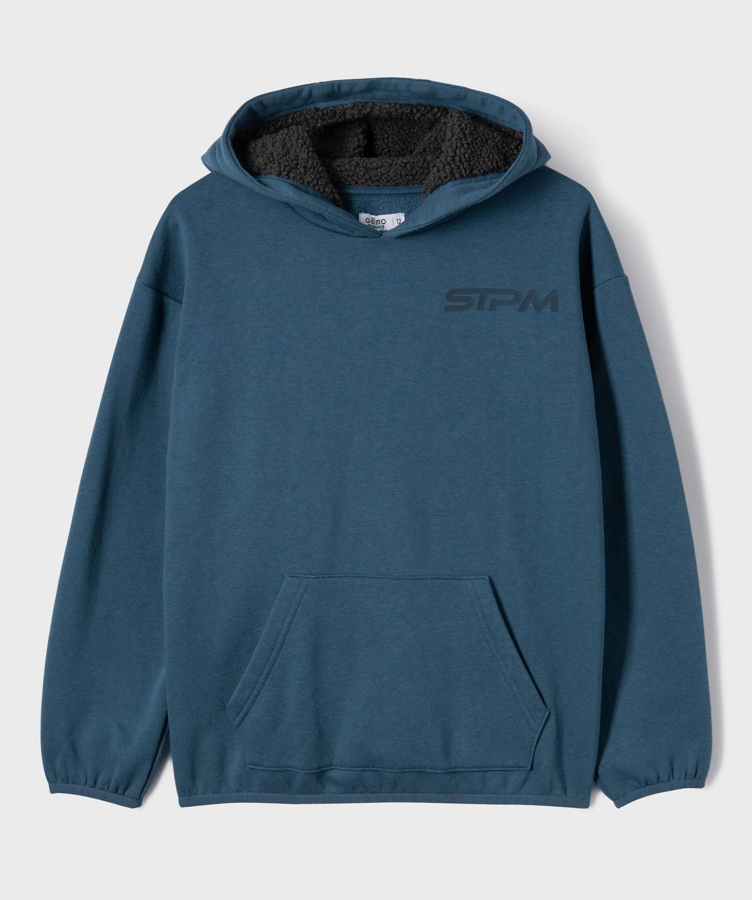 Sweat molletonné avec capuche doublée sherpa garçon bleu