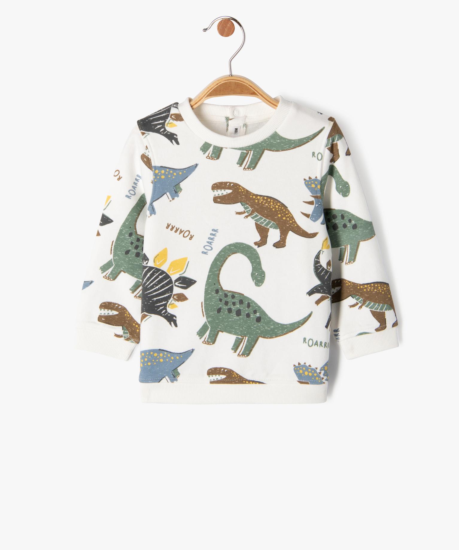 Sweat molletonné avec motif dinosaure bébé garçon blanc