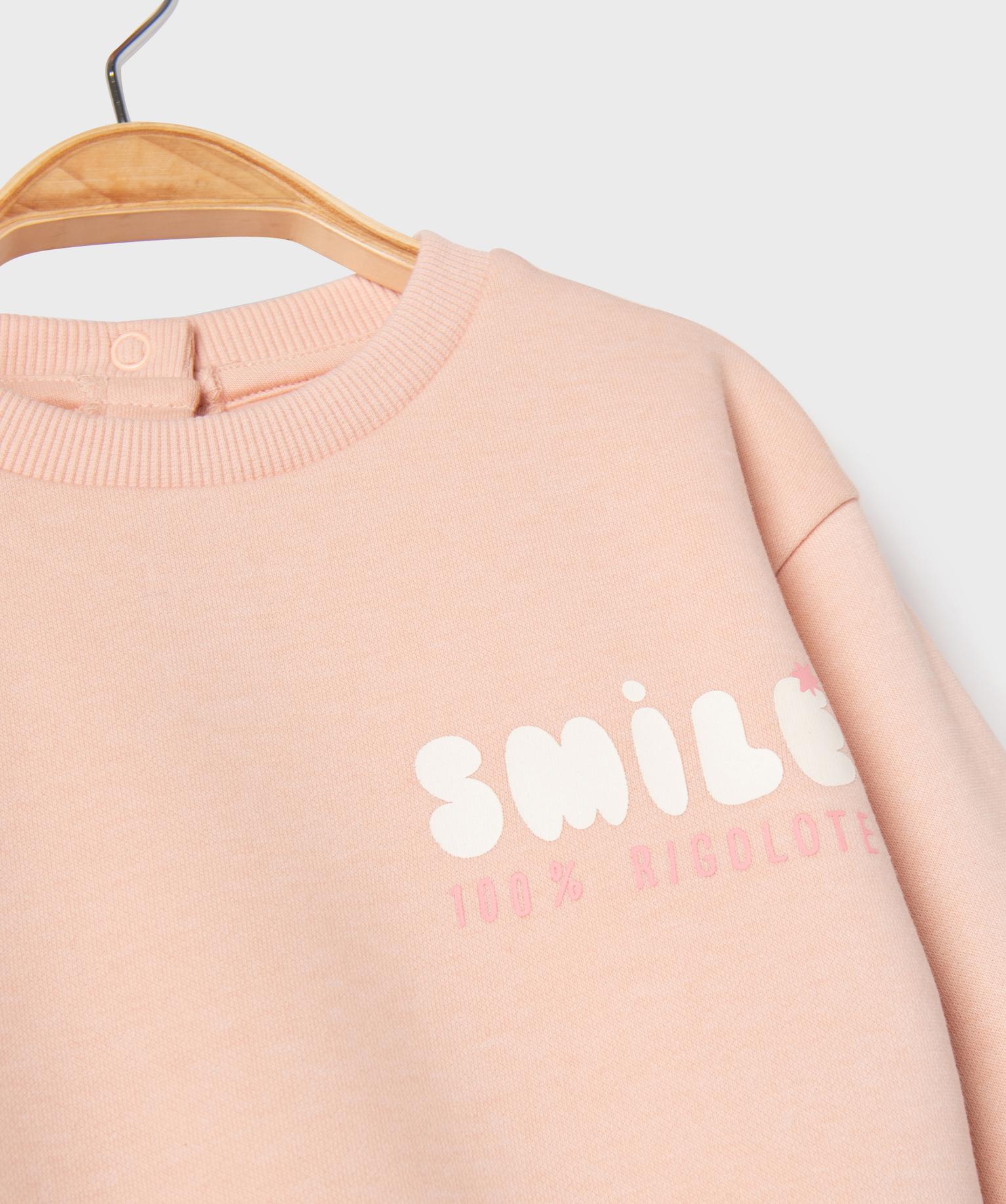 Sweat molletonné avec motifs bébé fille orange clair