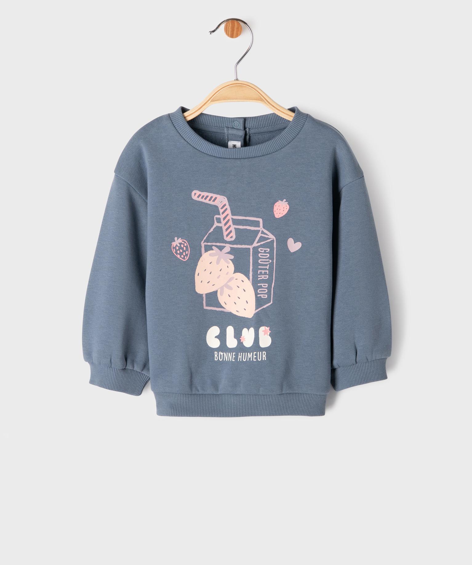 Pièce confort incontournable du vestiaire des enfants, le sweat se pare ici de motifs craquants pour séduire les tout-petits. Ce sweat bébé fille affiche une coupe intemporelle avec finitions en bord-côtes. Il s’enfile facilement grâce à des boutons pression dans le haut du dos qui permettent d’élargir l’encolure. Un sweat à motifs à porter avec un pantalon de jogging, un jean ou une jupe selon les envies.