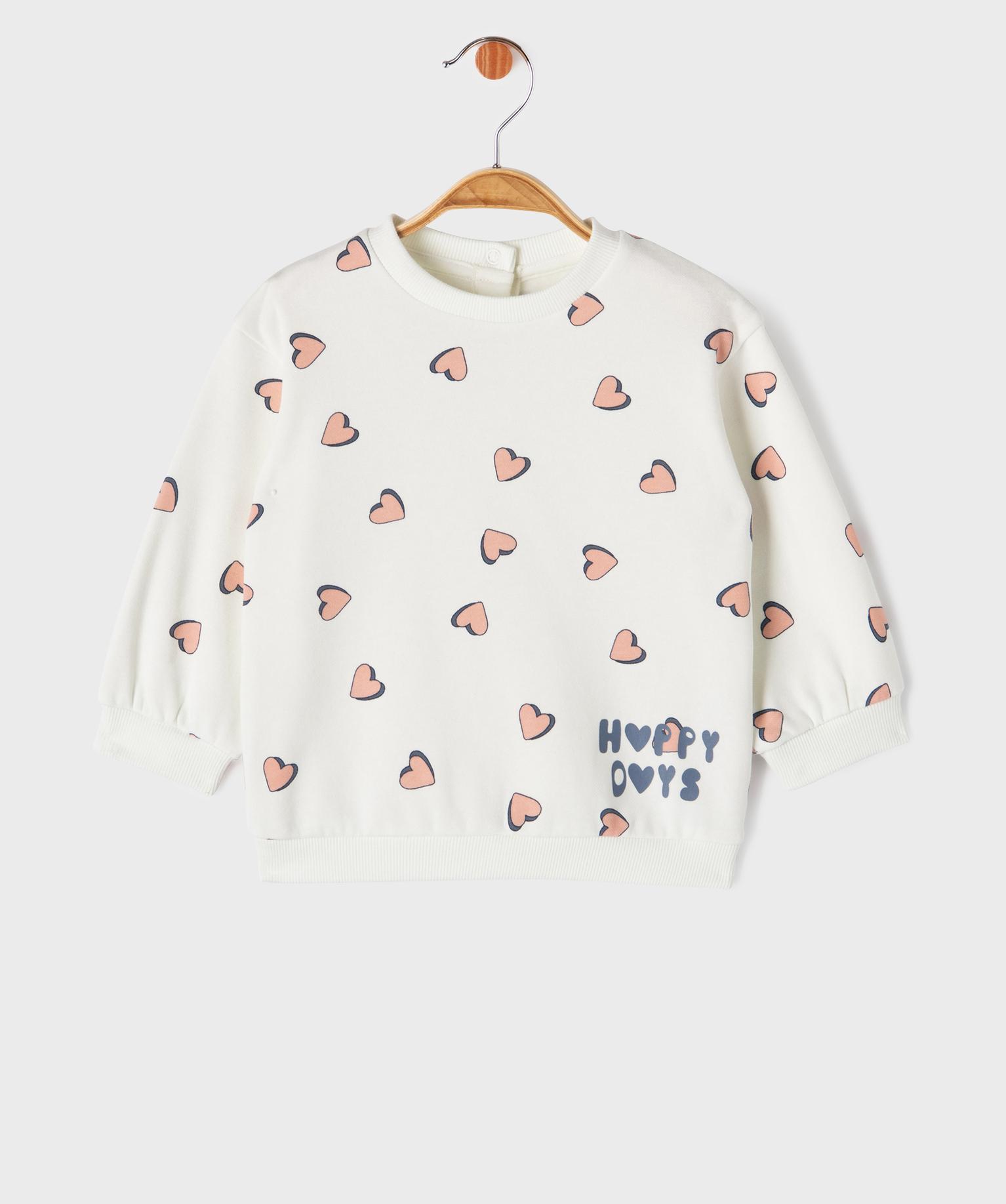 Pièce confort incontournable du vestiaire des enfants, le sweat se pare ici de motifs craquants pour séduire les tout-petits. Ce sweat bébé fille affiche une coupe intemporelle avec finitions en bord-côtes. Il s’enfile facilement grâce à des boutons pression dans le haut du dos qui permettent d’élargir l’encolure. Un sweat à motifs à porter avec un pantalon de jogging, un jean ou une jupe selon les envies.