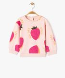 Envie d'une pièce confortable et craquante pour votre petite princesse ? Craquez pour ce sweat bébé fille ! Le modèle présente une coupe droite avec manches longues, col rond et une confection en molleton douillet et tout doux à l'intérieur. Deux boutons-pression dans le haut du dos facilitent le passage de la tête. Ce sweat molletonné présente de jolis motifs sur le buste, ou en "all over" pour une belle note de fantaisie. Finition bord-côte au col, aux poignets et dans le bas.