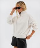 Sweat oversize en maille bouclette avec col montant femme ecru
