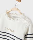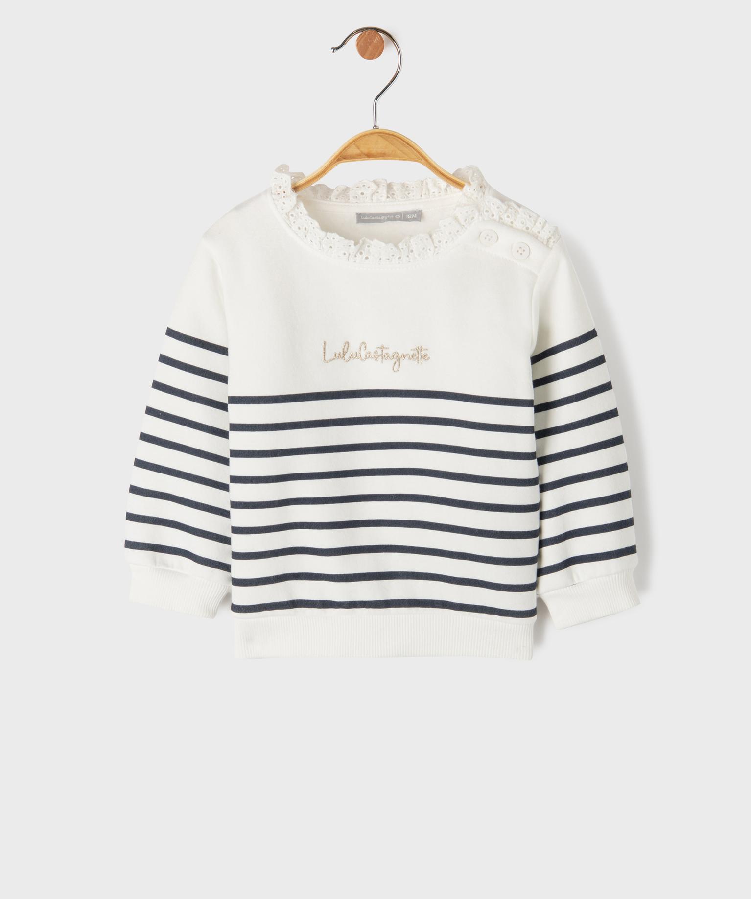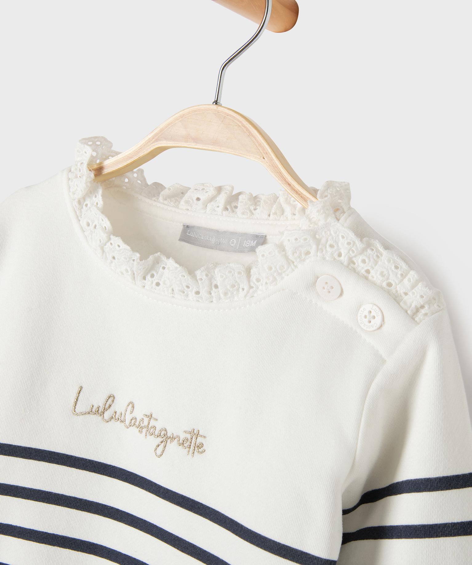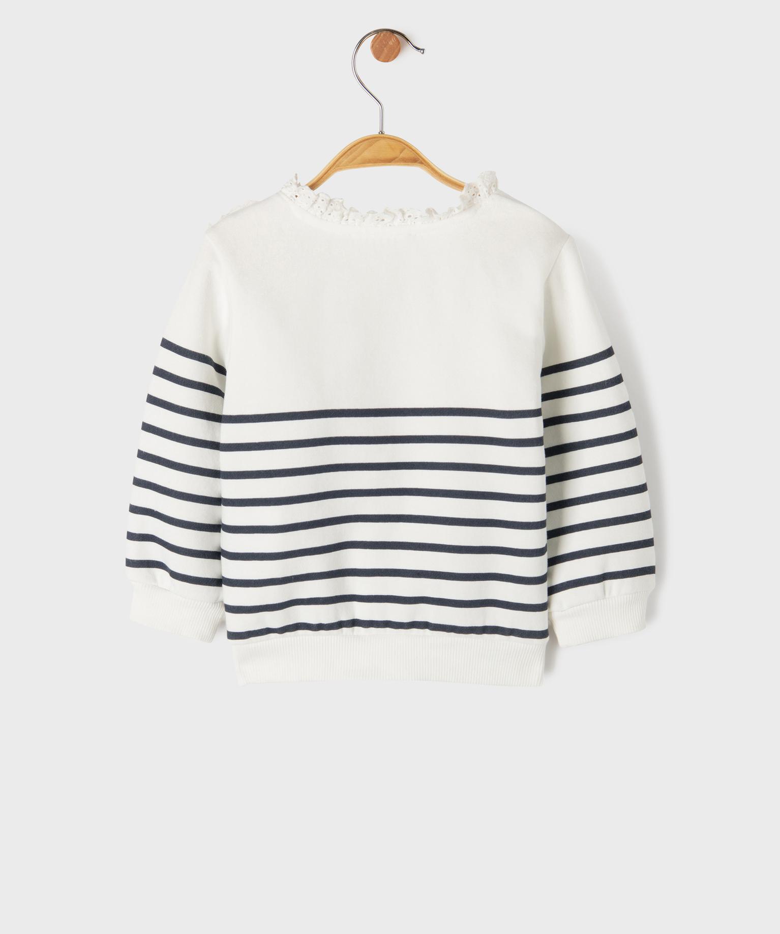 Sweat rayé à col dentelle bébé fille blanc