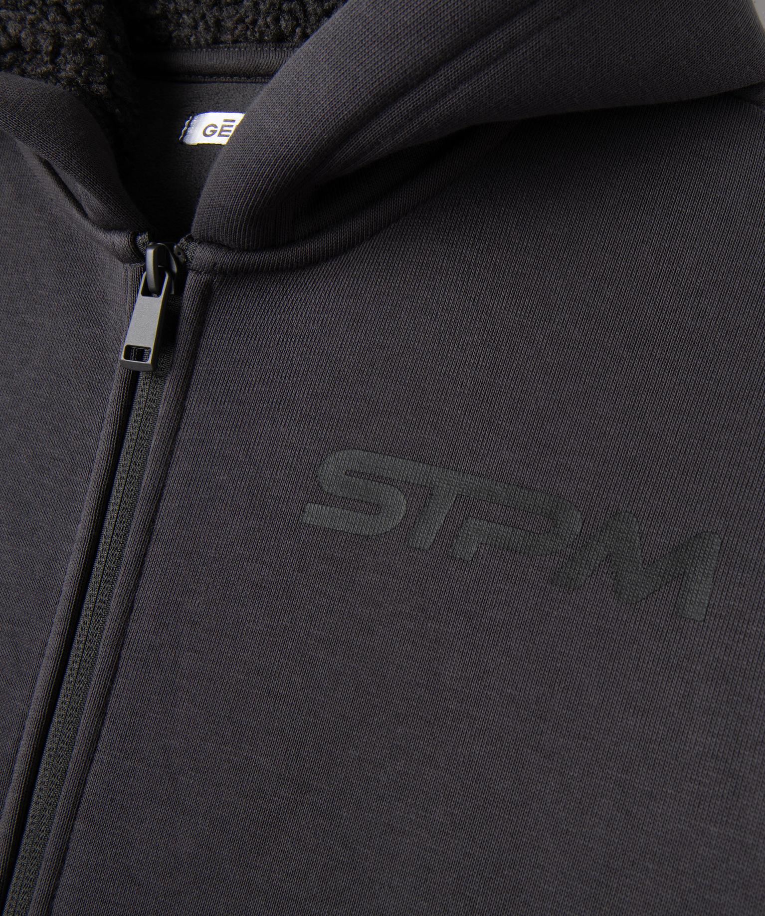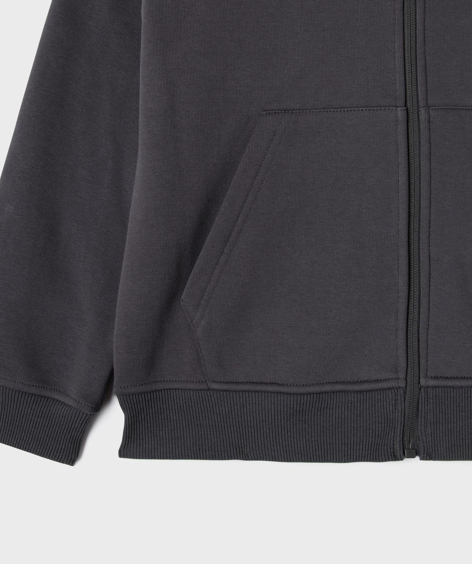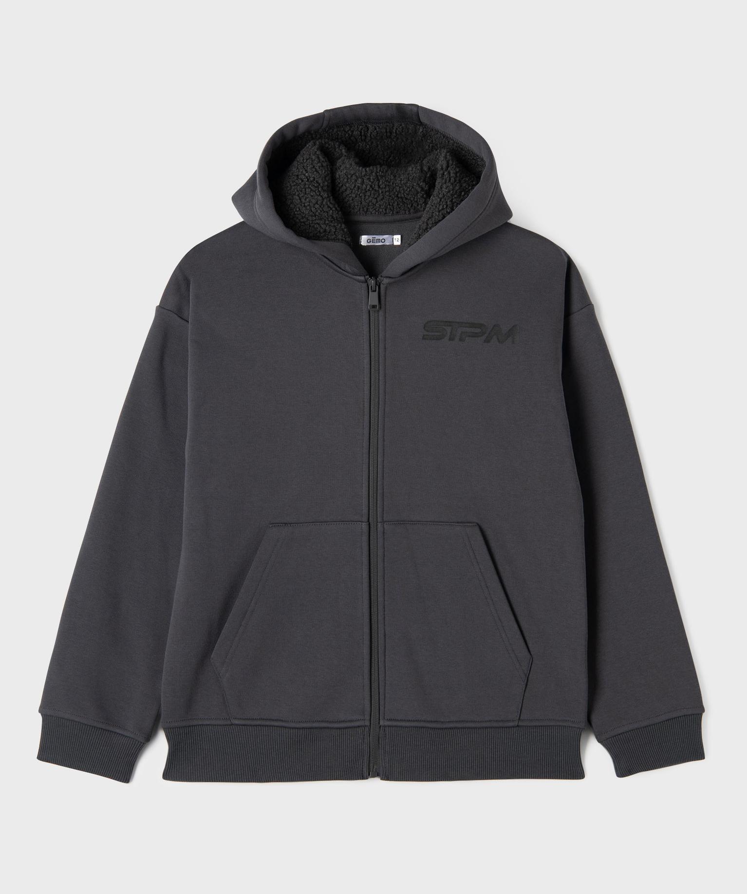 Sweat zippé à capuche avec intérieur chaud garçon gris fonce