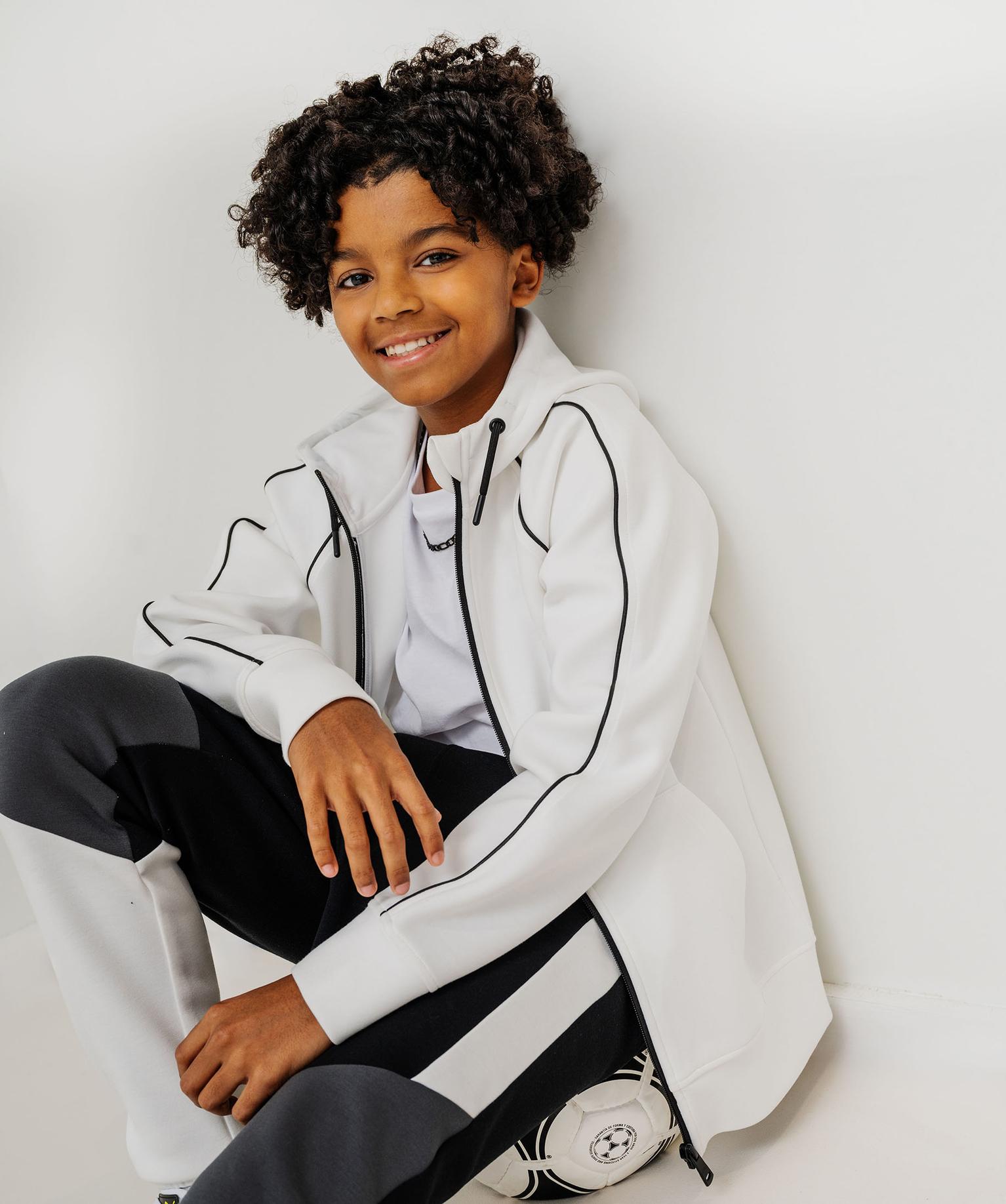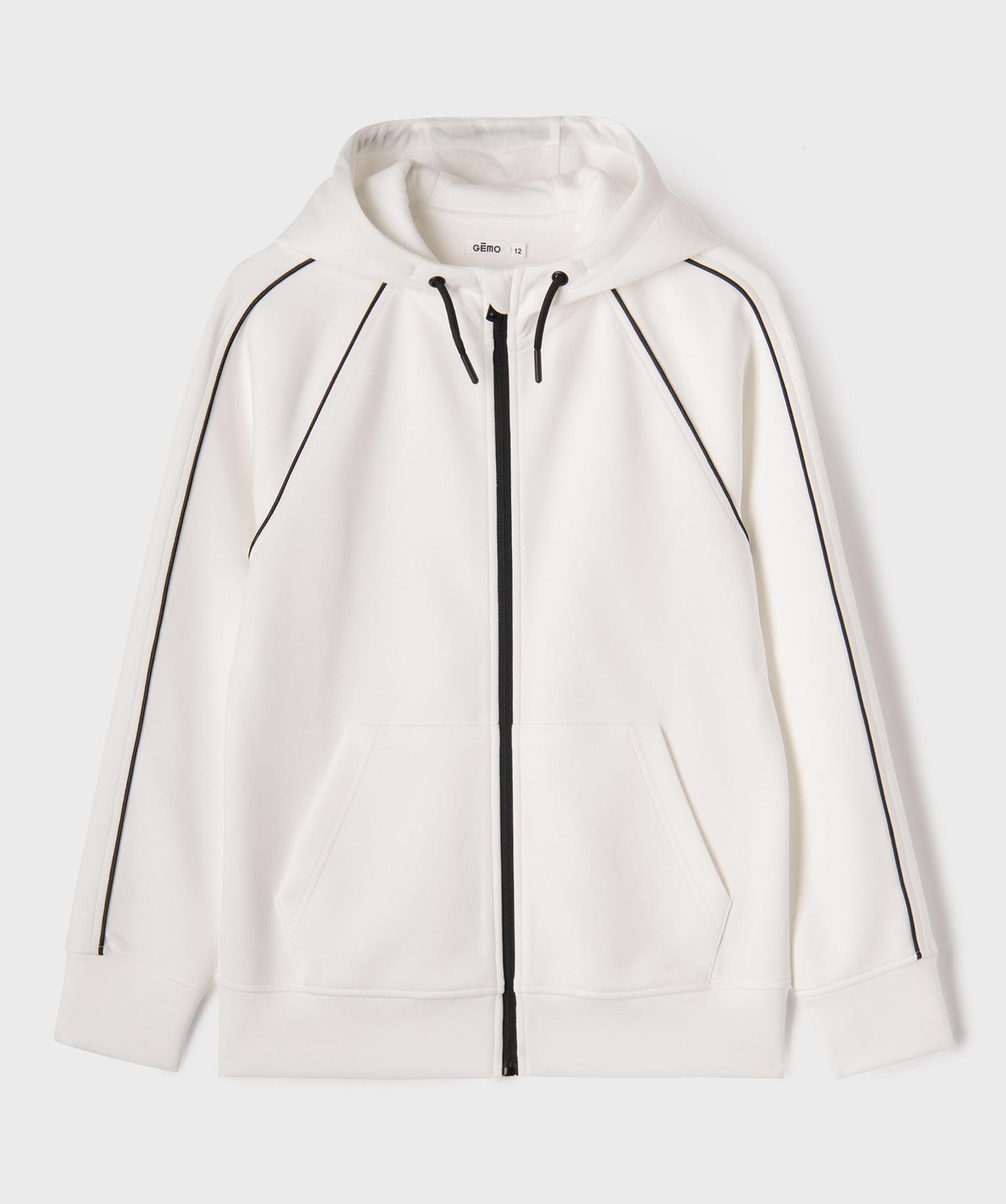 Sweat zippé à capuche avec liserés contrastants garçon ecru