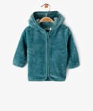 Sweat zippé à capuche en fourrure imitation bébé bleu