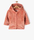 Sweat zippé à capuche en fourrure imitation bébé rose chine