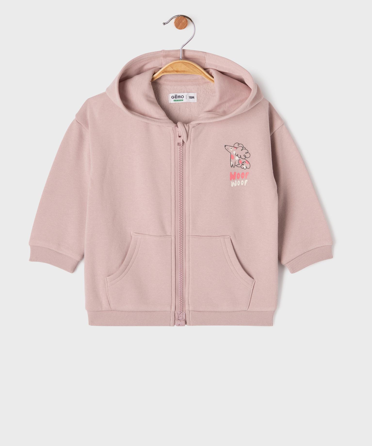 Sweat zippé à capuche en molleton doux imprimé bébé fille - Les Produits Malins violet clair